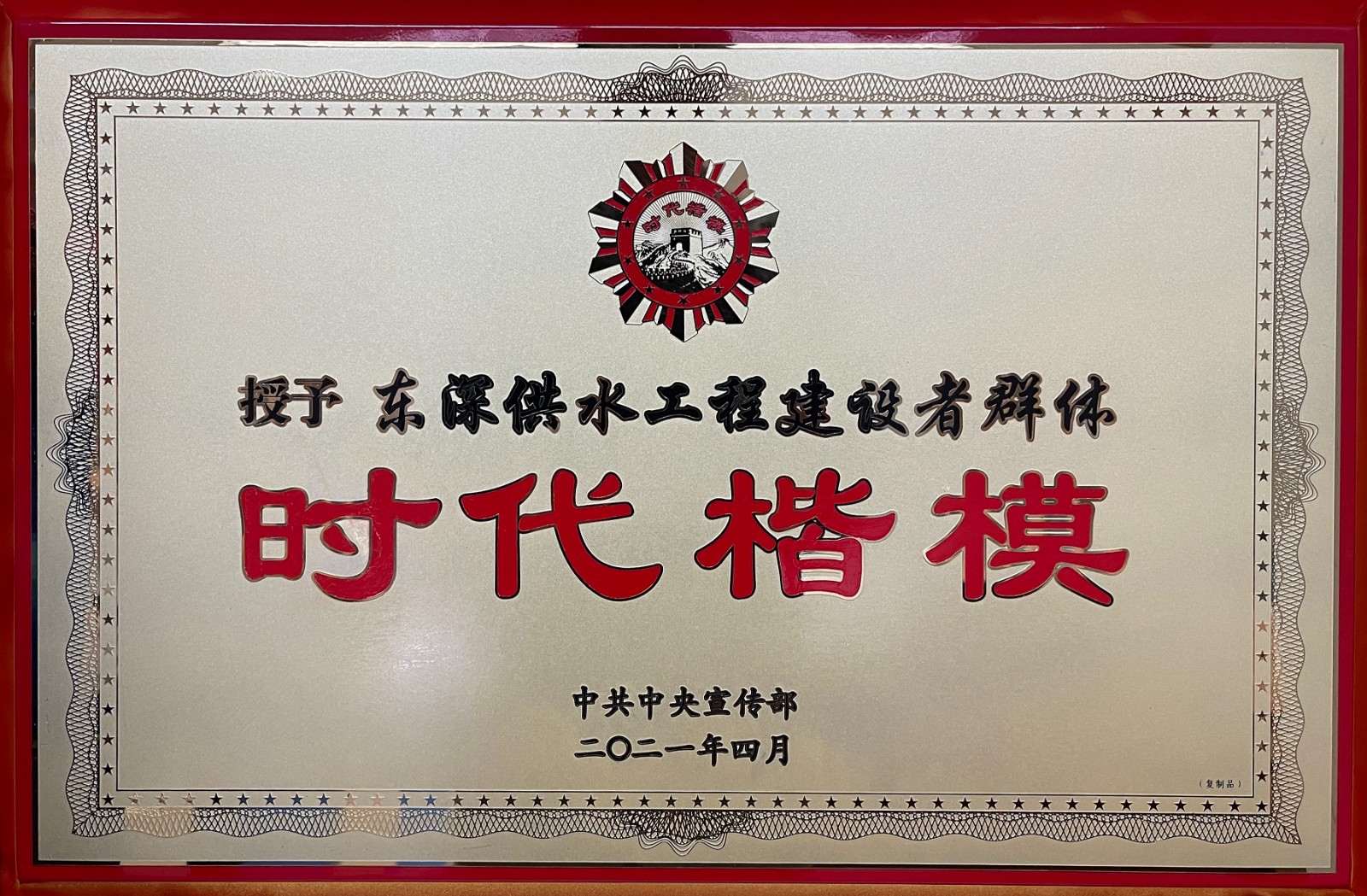 “時(shí)代楷模”榮譽(yù)稱號(hào)——東深供水工程建設(shè)者群體