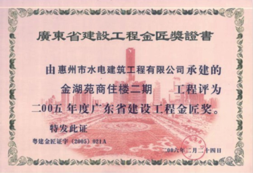 廣東省建設工程金匠獎——金湖苑商住樓二期