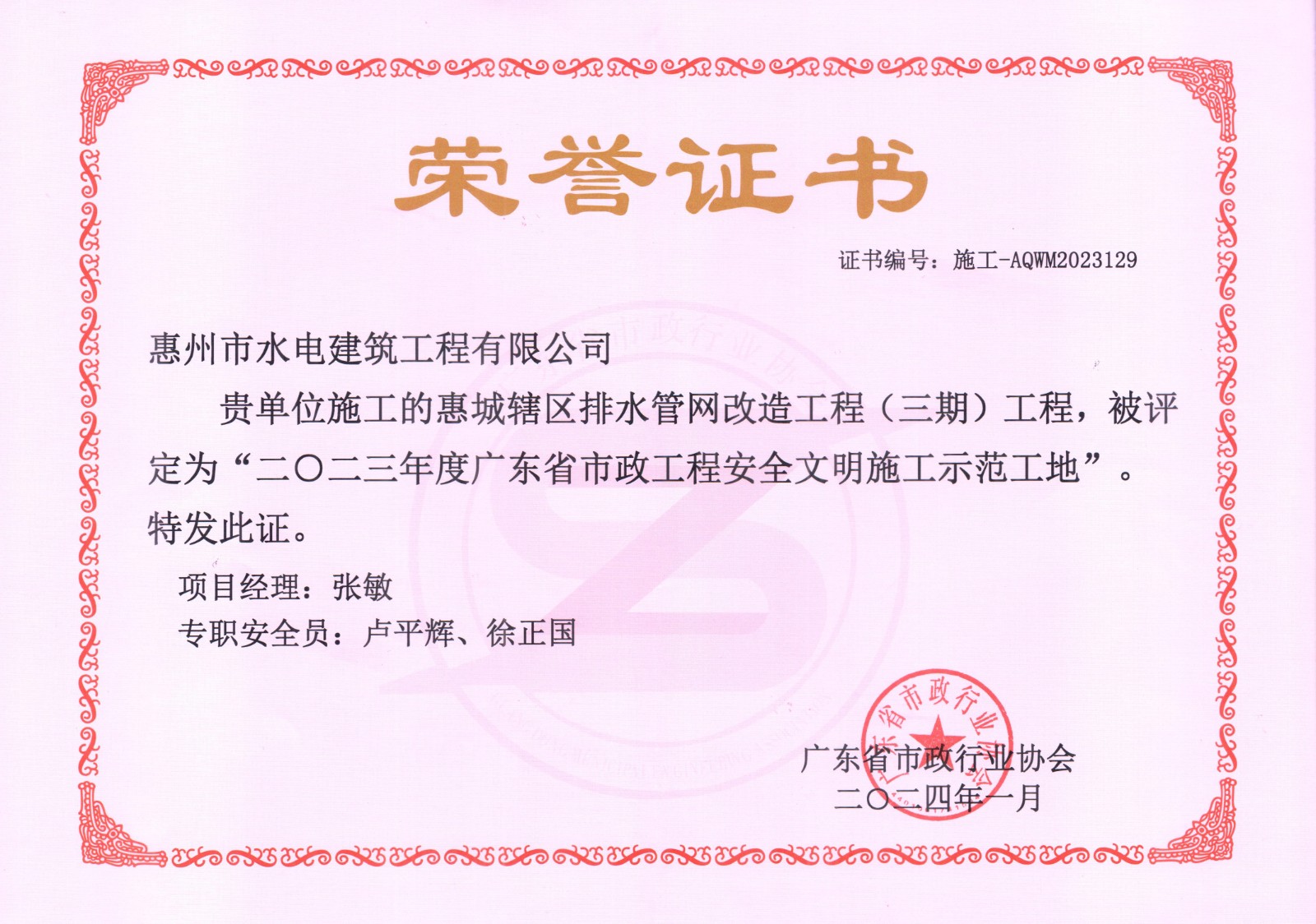 廣東省市政工程安全文明施工示范工地——惠城轄區排水管網改造工程三期