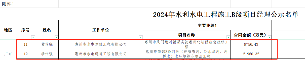 11月13日,中國水利企業協會發布2024年水利水電工程施工項目經理評價結果公示,我司黃傳曉、李偉強2名同志被評為水利水電工程施工B級項目經理。......