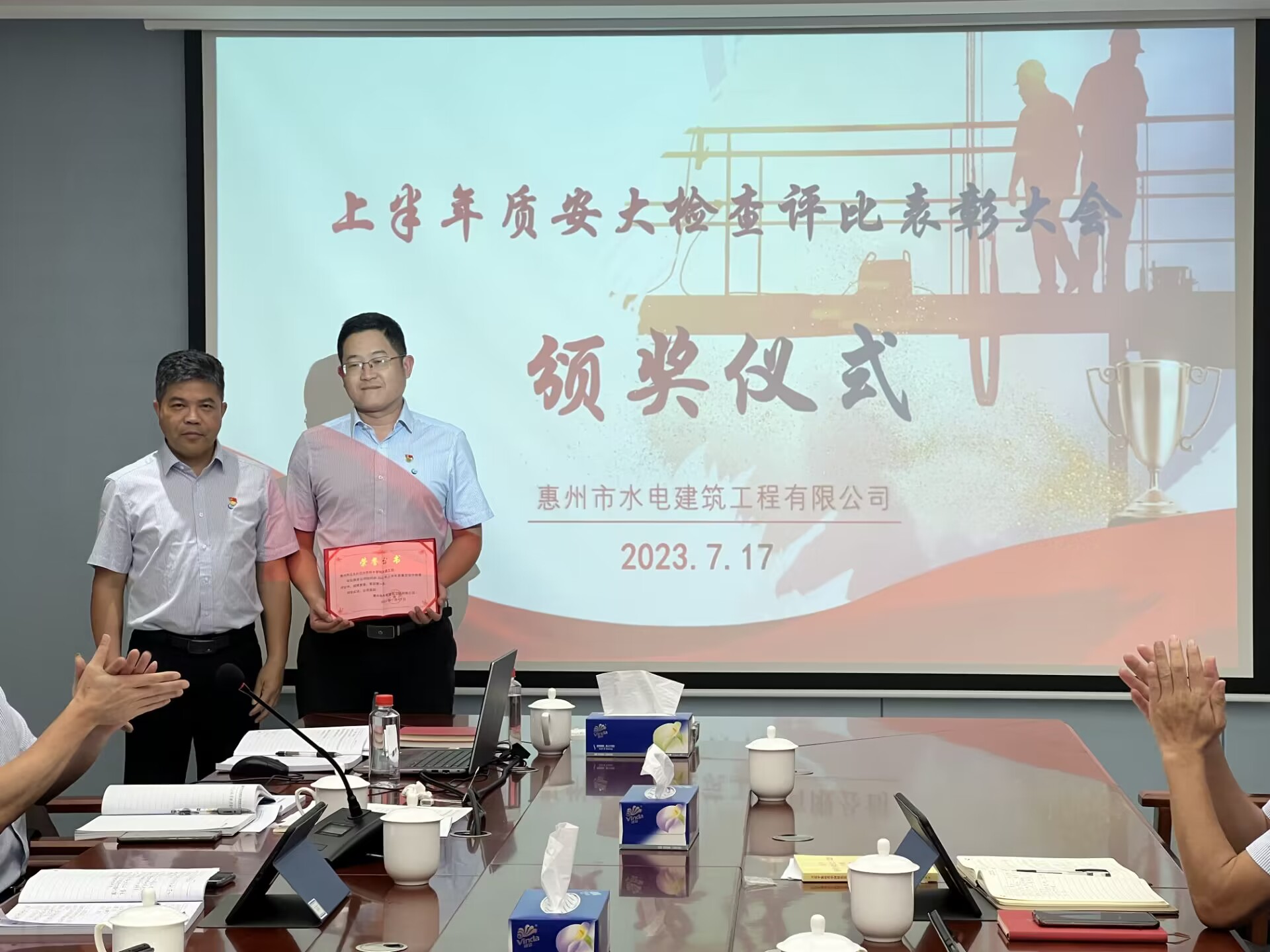 隨后,陳泳周經(jīng)理代表公司安委辦通報第二季度質(zhì)安大檢查情況及檢查評比結果。鄭海強董事長對榮獲本次質(zhì)安評比前三名的項目進行表彰并作總結講話,他對公司“安全生產(chǎn)月”開展的各項工作表示充分肯定,同時提出以下幾點要求:一是要做好防臺風工作,保證通訊暢通、機械設備正常使用,加強值班值守,確保人員到位;二是要做好項目標準化工作,提升公司品牌形象;三是要持續(xù)關注危險性較大的項目,規(guī)避安全風險;四是近三個月要重點關注臨水工程,做好圍擋工作,懸掛安全警示標志;五是做好農(nóng)民工造冊工作,足額發(fā)放工資。(通訊員:黃麗霞)