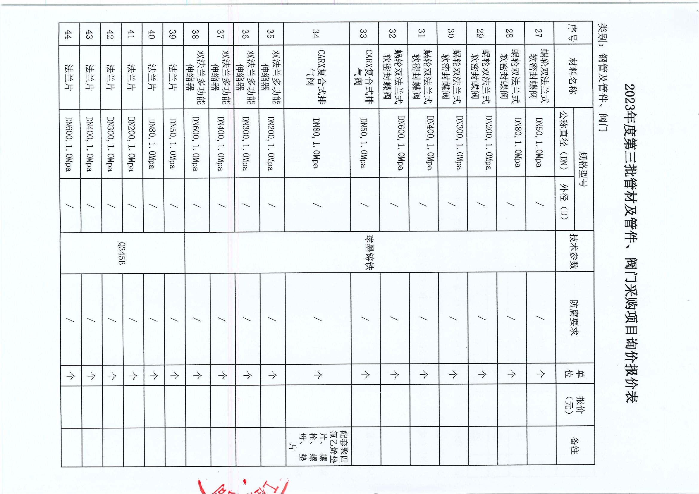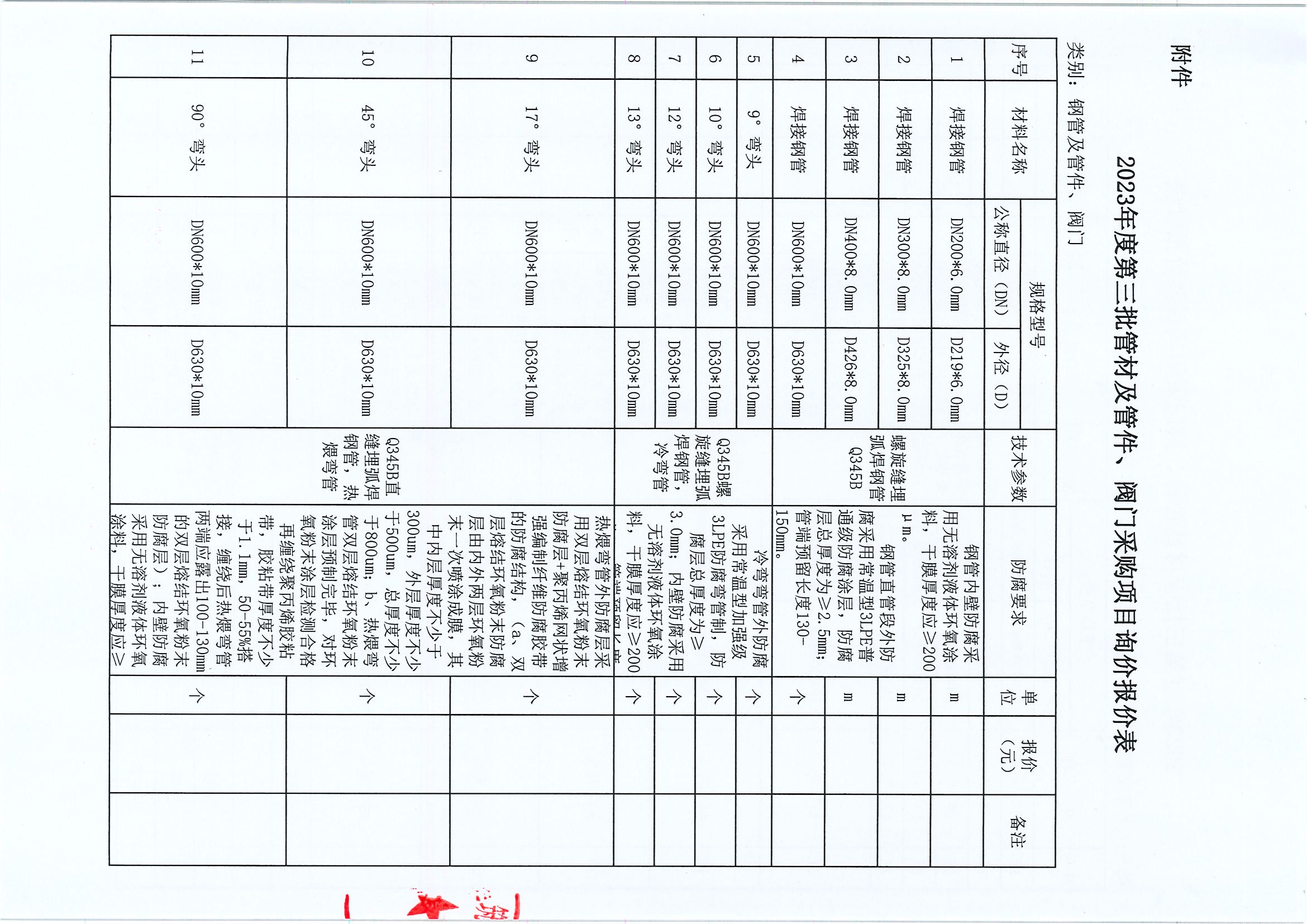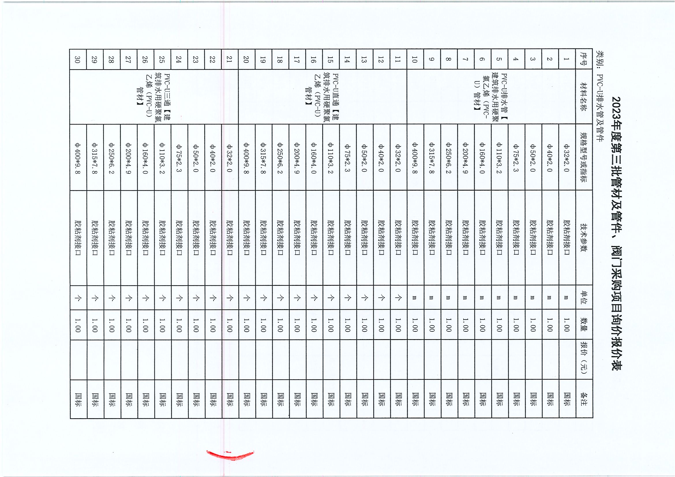 附件:2023年度第三批管材及管件、閥門采購項目詢價報價表