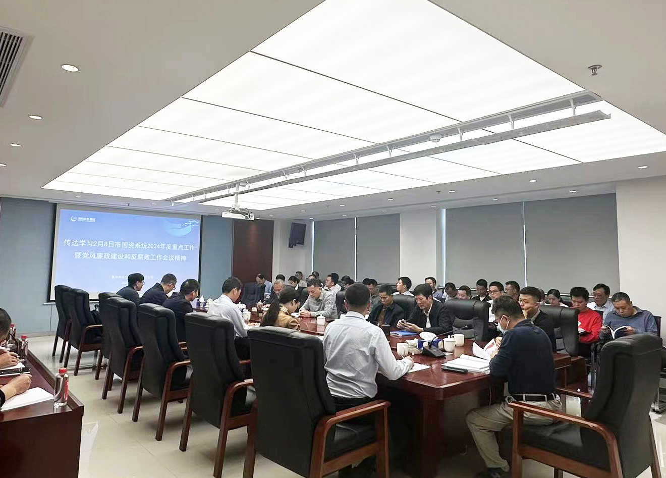 會議首先由公司黨委書記、董事長鄭海強傳達2月8日市國資系統2024年度重點工作暨黨風廉政建設和反腐敗工作會議精神。市國資委葉育強主任在會上系統總結了國資系統2023年工作情況,并從服務發展、改革攻堅、運營提效、黨建引領、全面從嚴治黨等五個方面提出了2024年工作思路和要求。