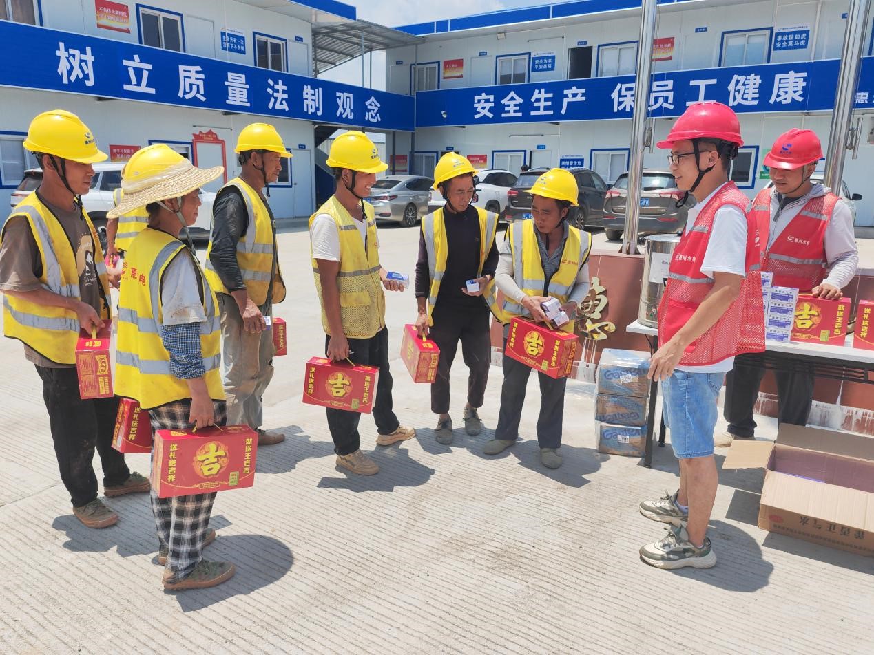 為保障高溫天氣下施工人員的人身安全與健康,臨時黨支部積極組織黨員服務隊,關心關愛施工一線工人,為他們解決實際困難,營造出良好的施工氛圍。