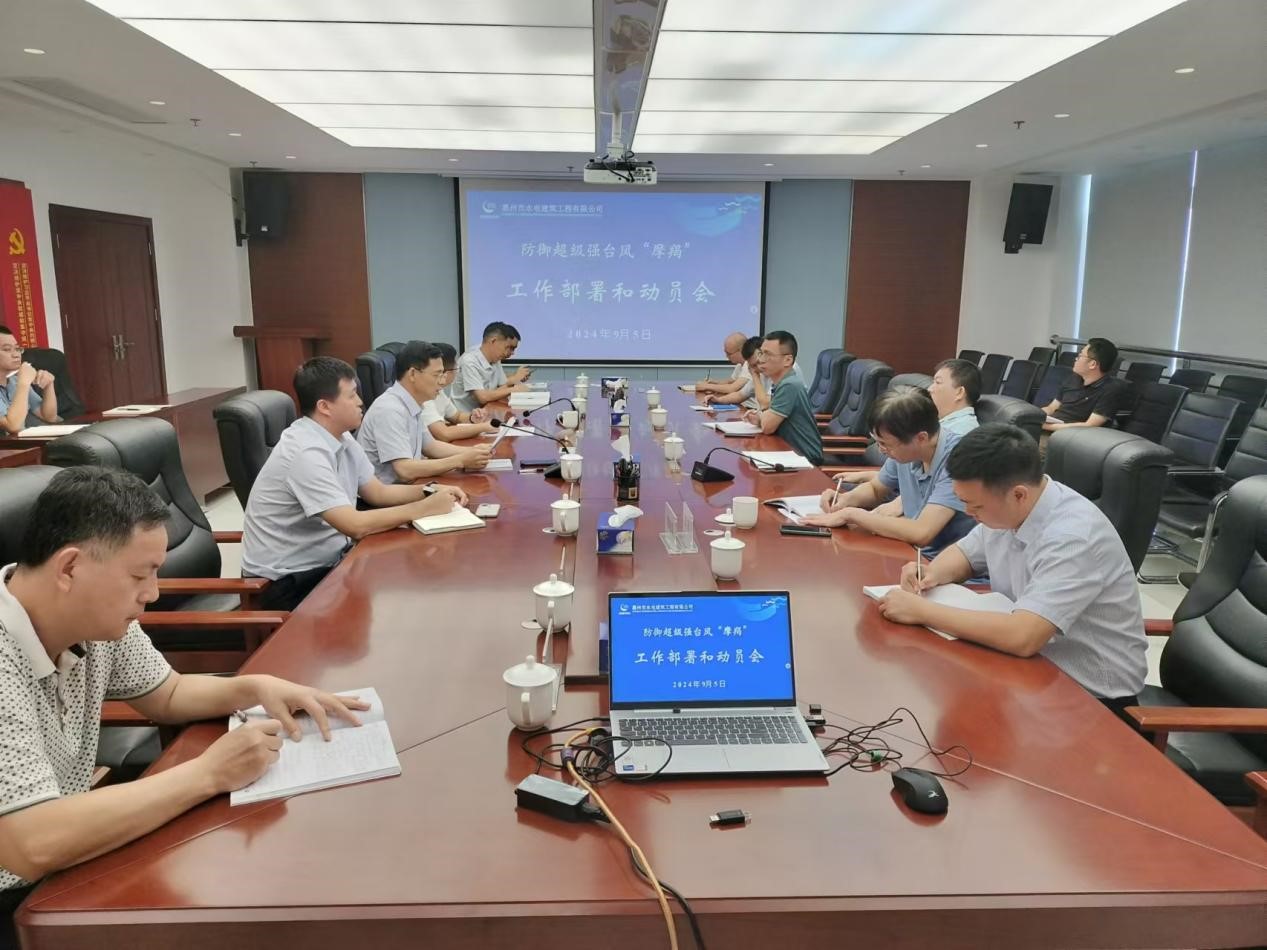 今年第11號臺風“摩羯”預計以強臺風級或超強臺風級在海南萬寧到陽江陽西一帶沿海登陸。受“摩羯”環流影響,惠州市沿海及近海海面陣風將逐漸加大至8~10級,預計6日起惠州市將有中到強雷雨局部暴雨。為做好超強臺風防御工作,堅決守住安全防線,9月5日上午,集團黨委委員、副總經理,公司黨委書記、董事長陳耀中主持召開防御超強臺風“摩羯”工作部署動員會,公司領導班子成員,各部門、施工分隊及所屬企業負責人參加會議。