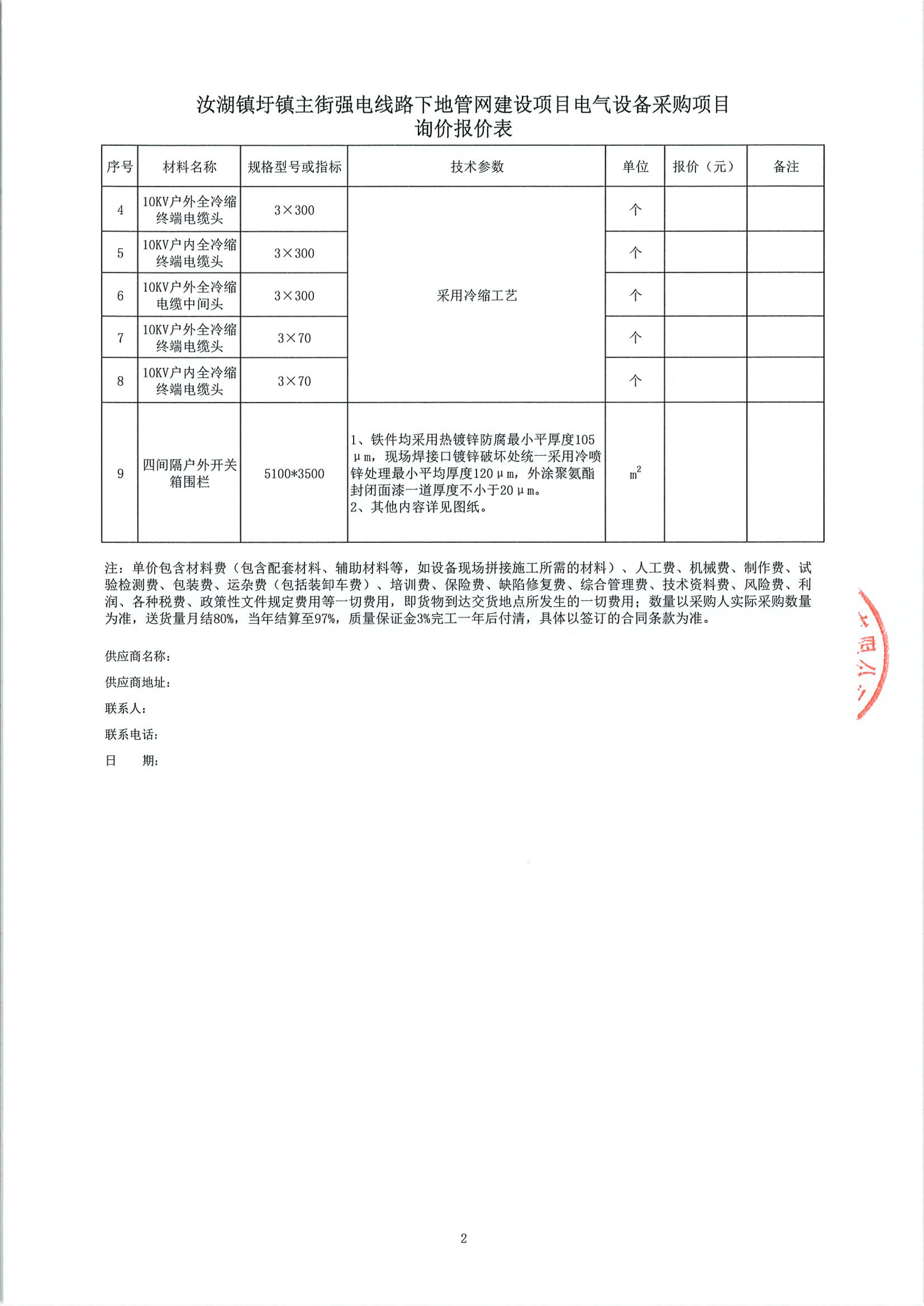 汝湖鎮圩鎮主街強電線路下地管網建設項目電氣設備采購項目詢價公告