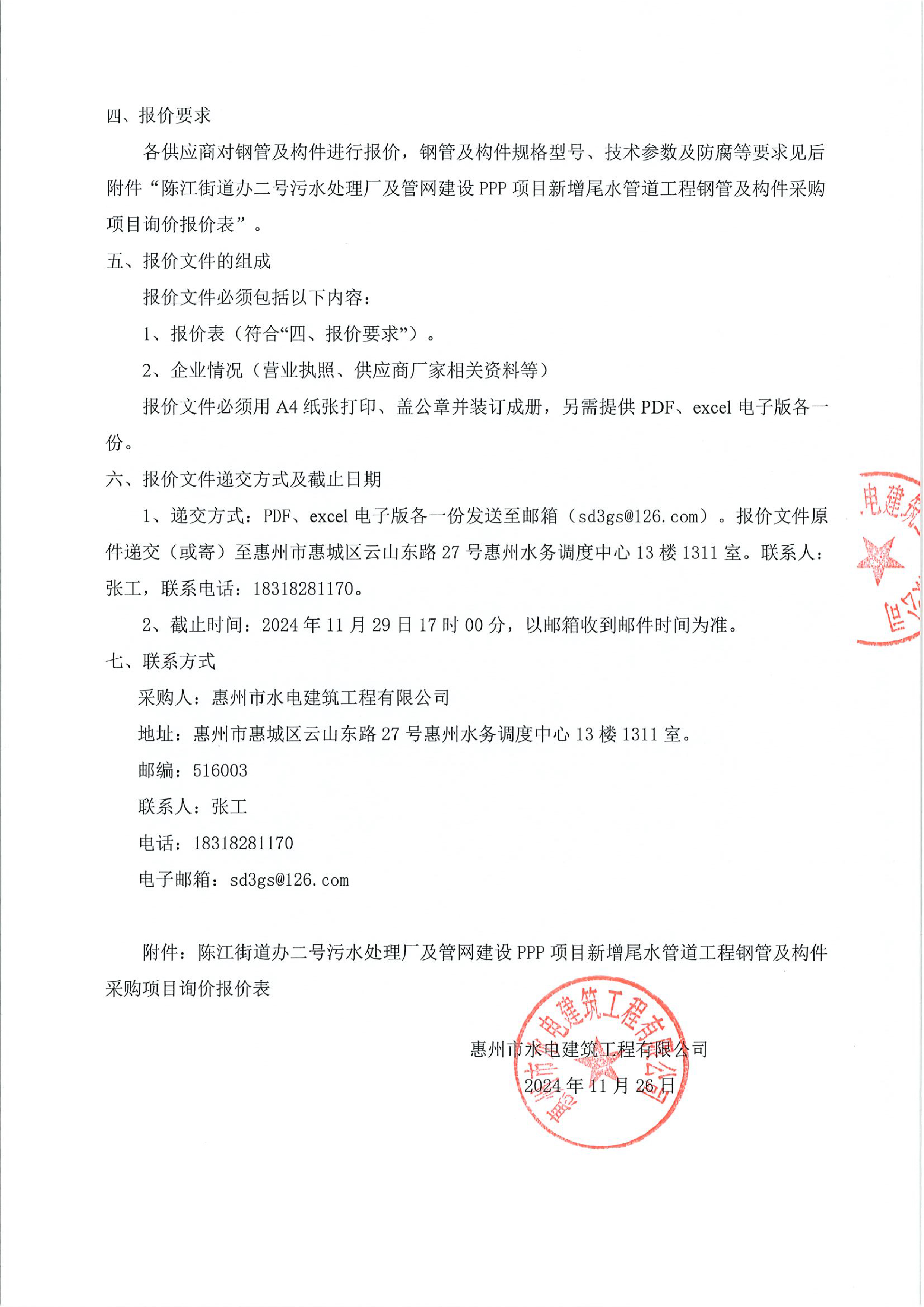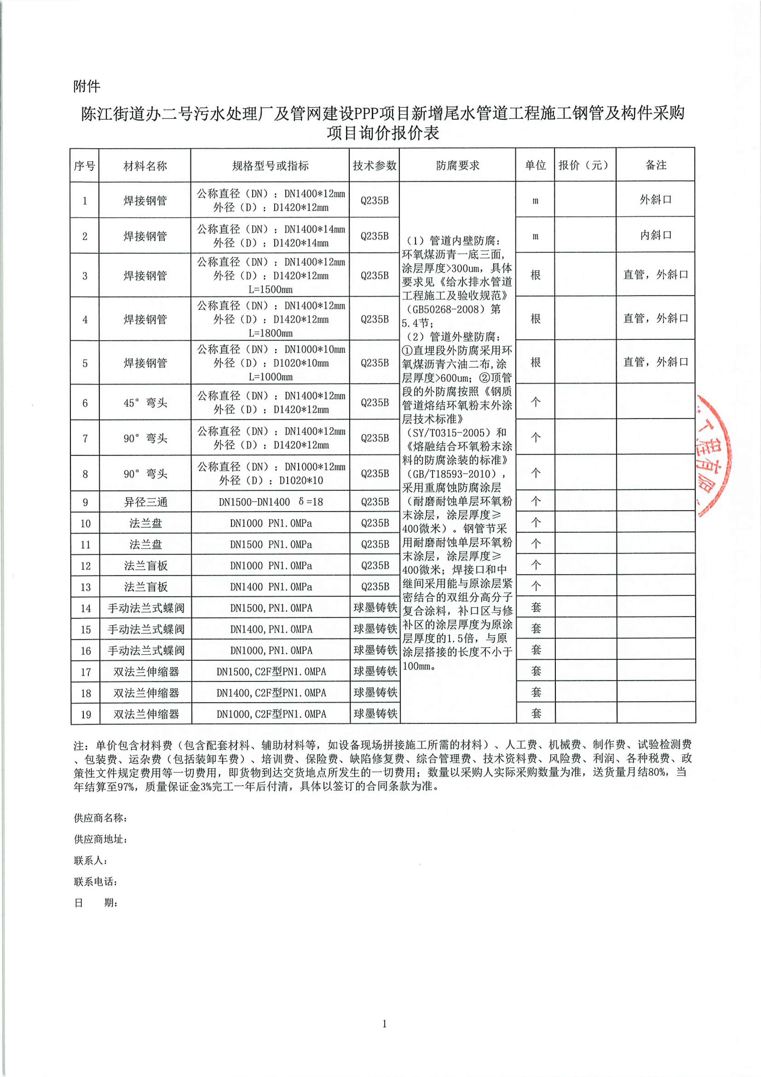 附件:陳江街道辦二號(hào)污水處理廠(chǎng)及管網(wǎng)建設(shè)PPP項(xiàng)目新增尾水管道工程鋼管及構(gòu)件采購(gòu)項(xiàng)目詢(xún)價(jià)報(bào)價(jià)表
