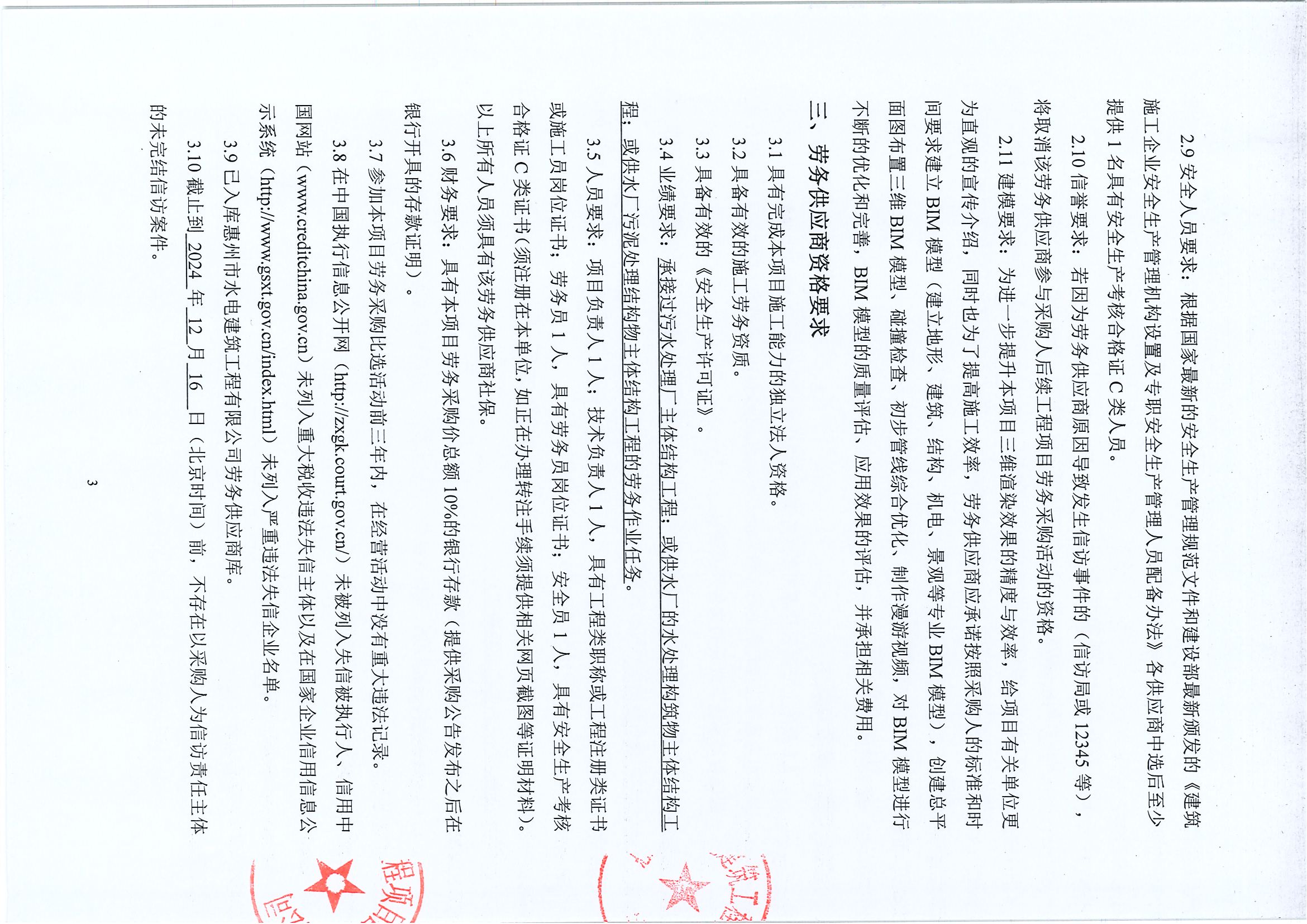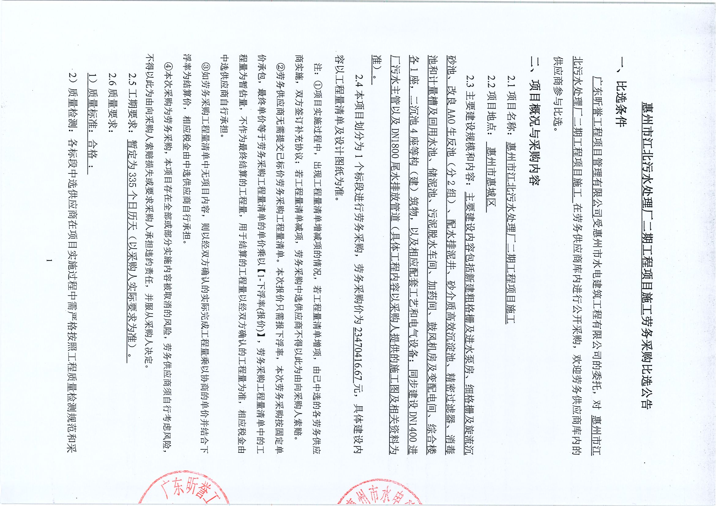 惠州市江北污水處理廠二期工程項目施工勞務采購比選公告附件: