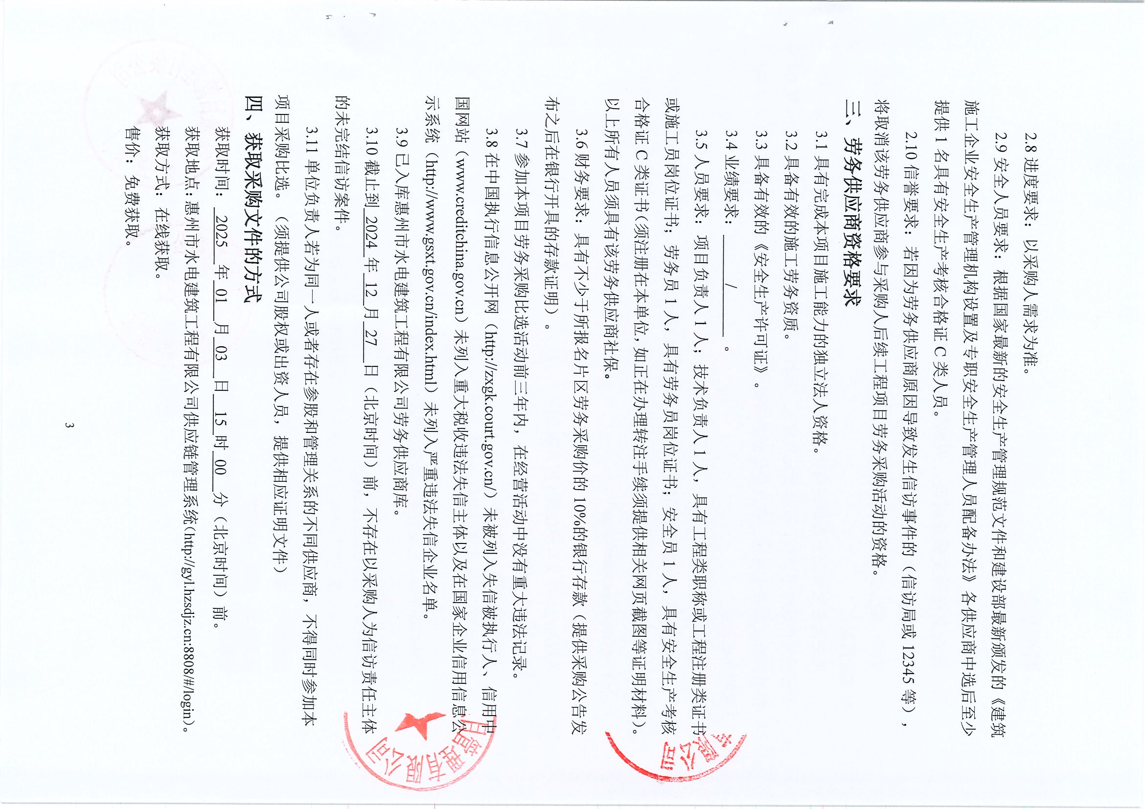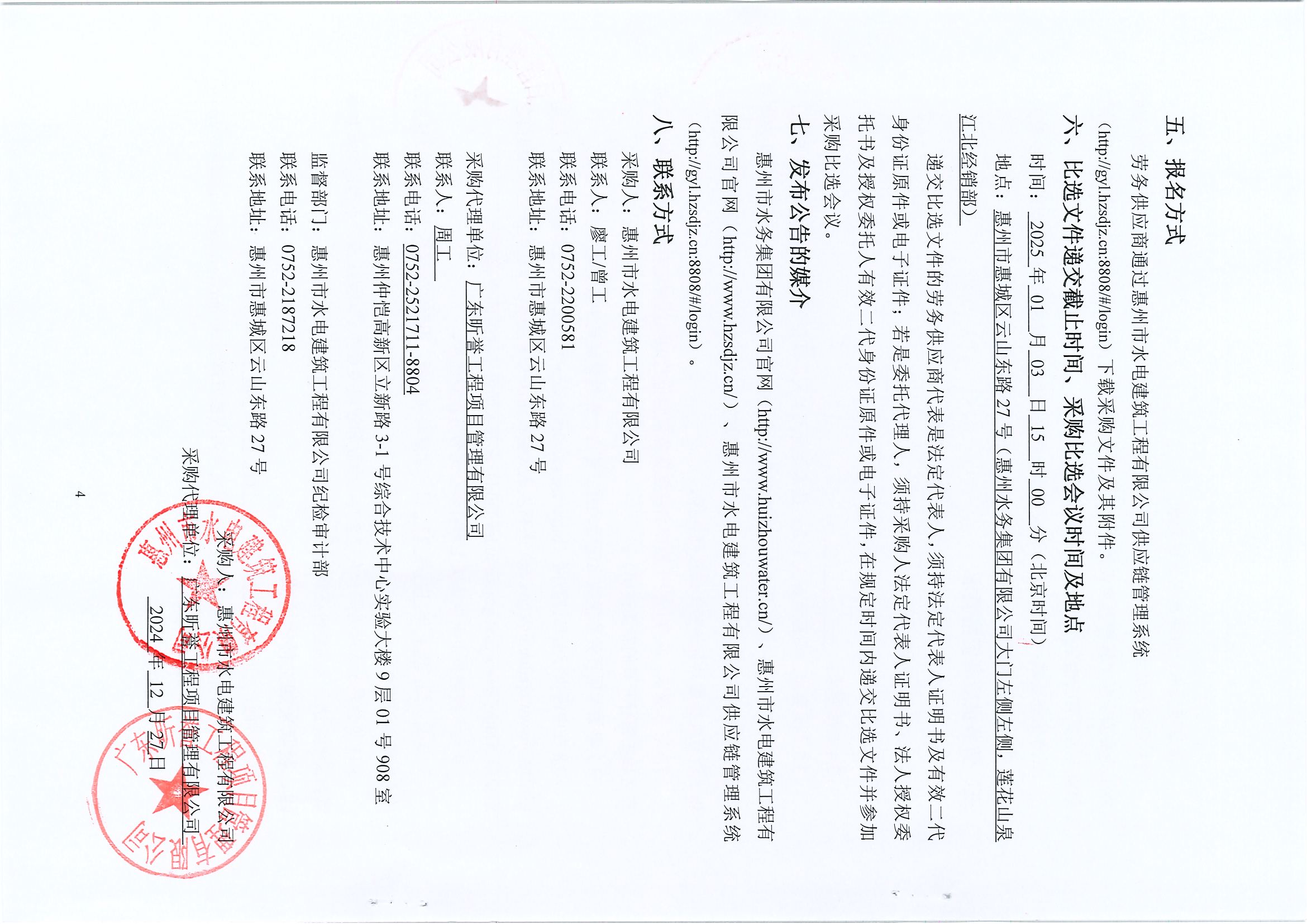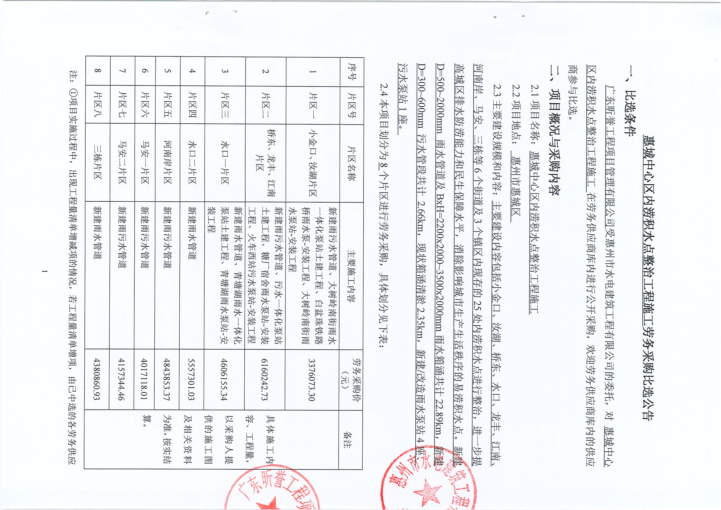 惠城中心區內澇積水點整治工程施工勞務采購比選公告