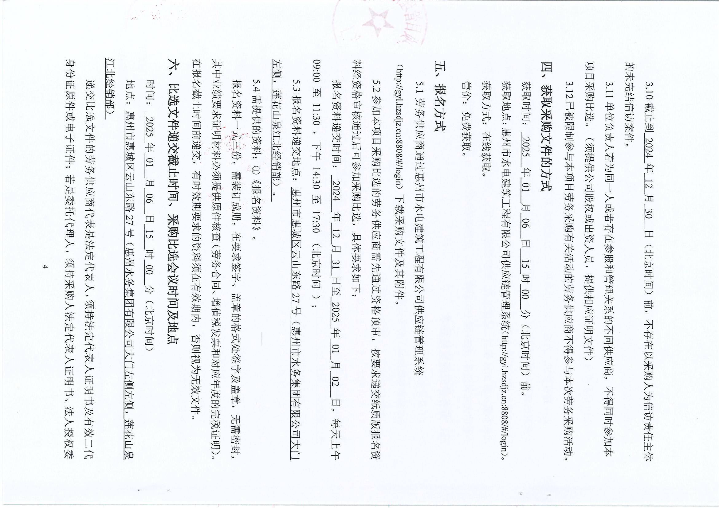 惠城中心區內澇積水點整治工程施工勞務采購比選公告