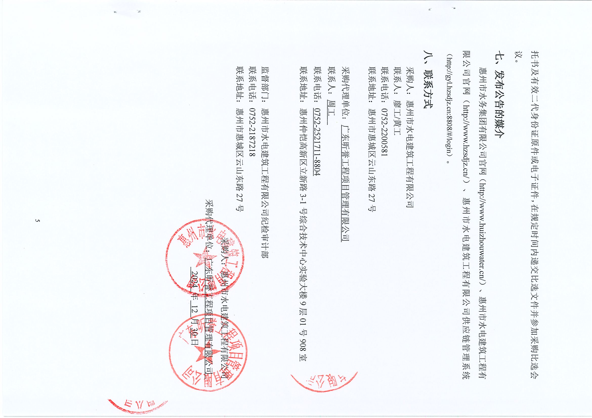 惠城中心區內澇積水點整治工程施工勞務采購中選候選人公示