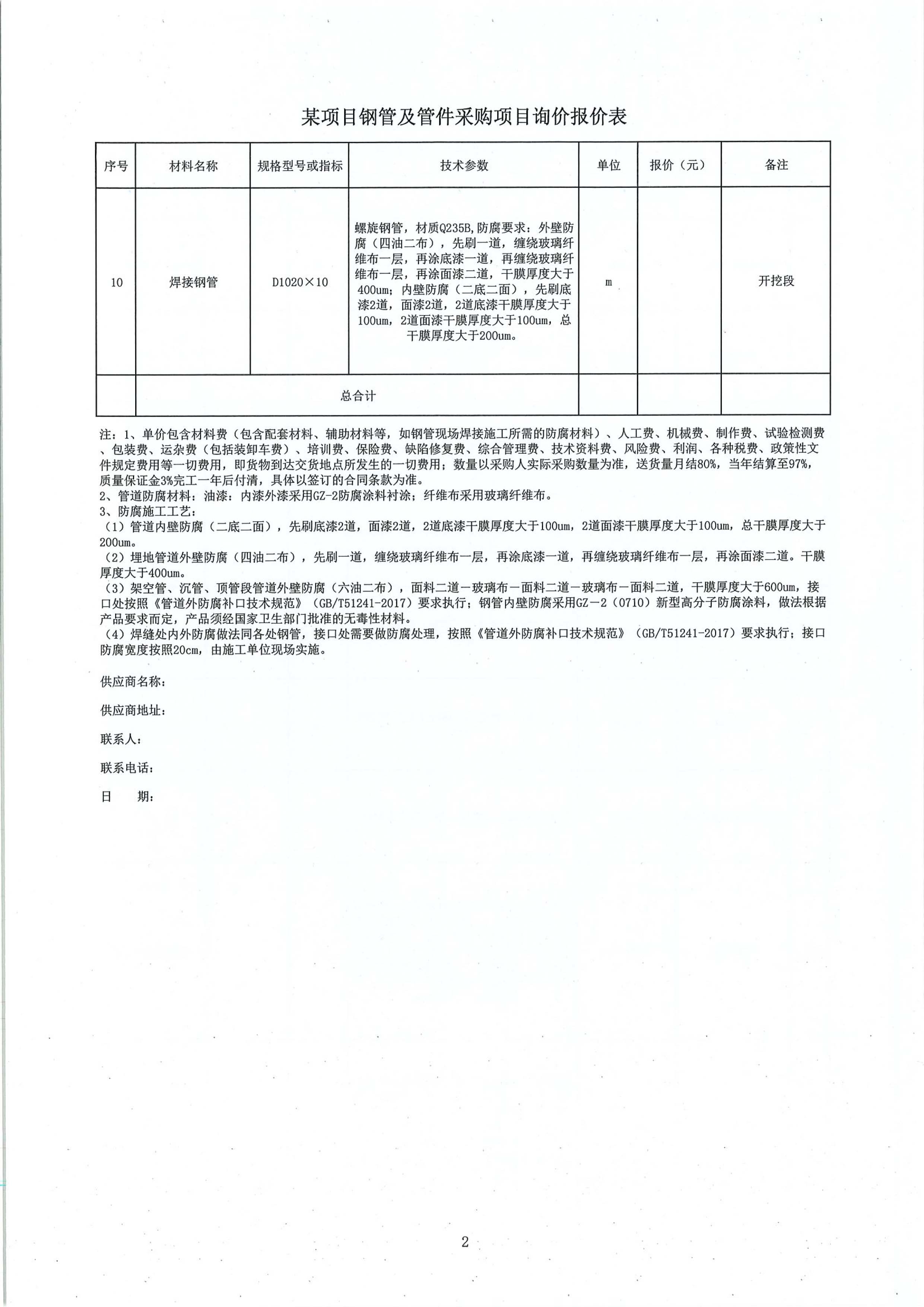 附件:某項目鋼管及管件采購項目詢價報價表