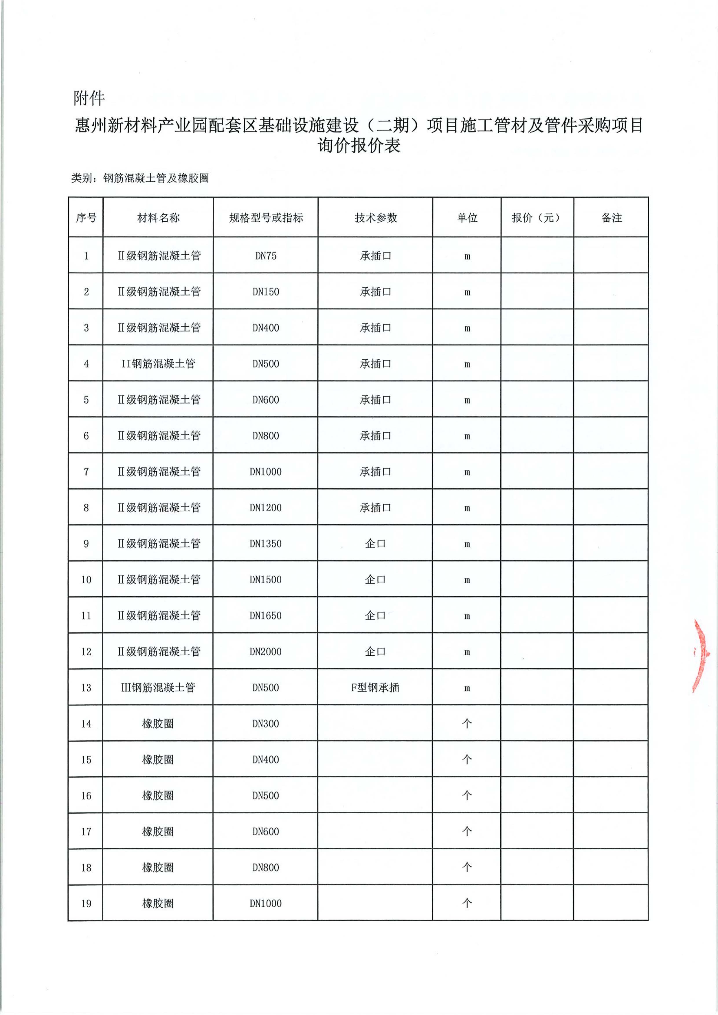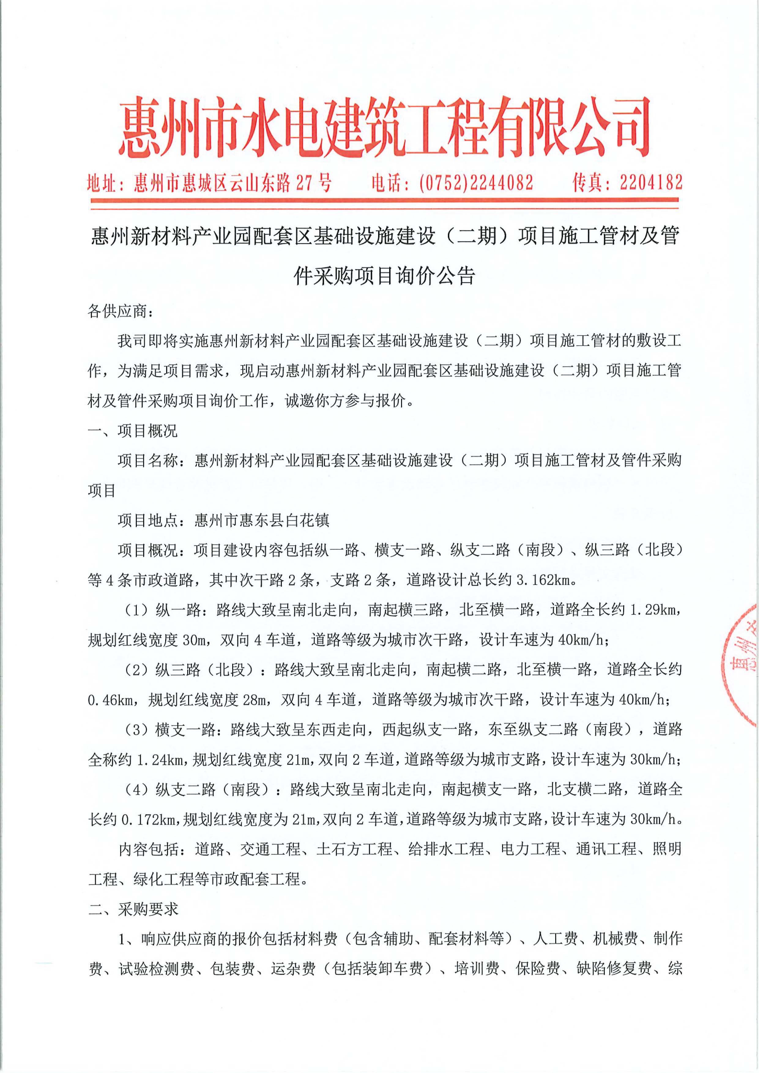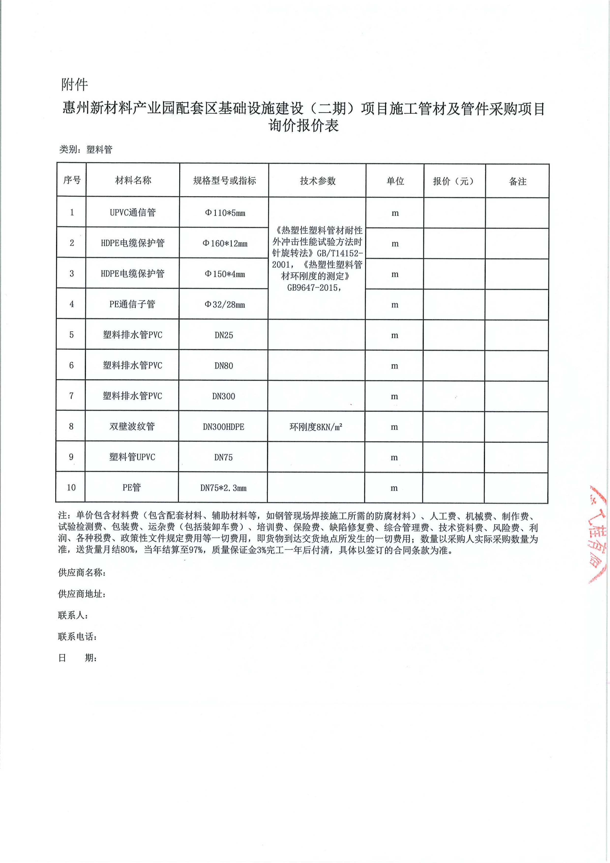 惠州新材料產業園配套區基礎設施建設(二期)項目施工管材及管件采購項目詢價公告附件:
