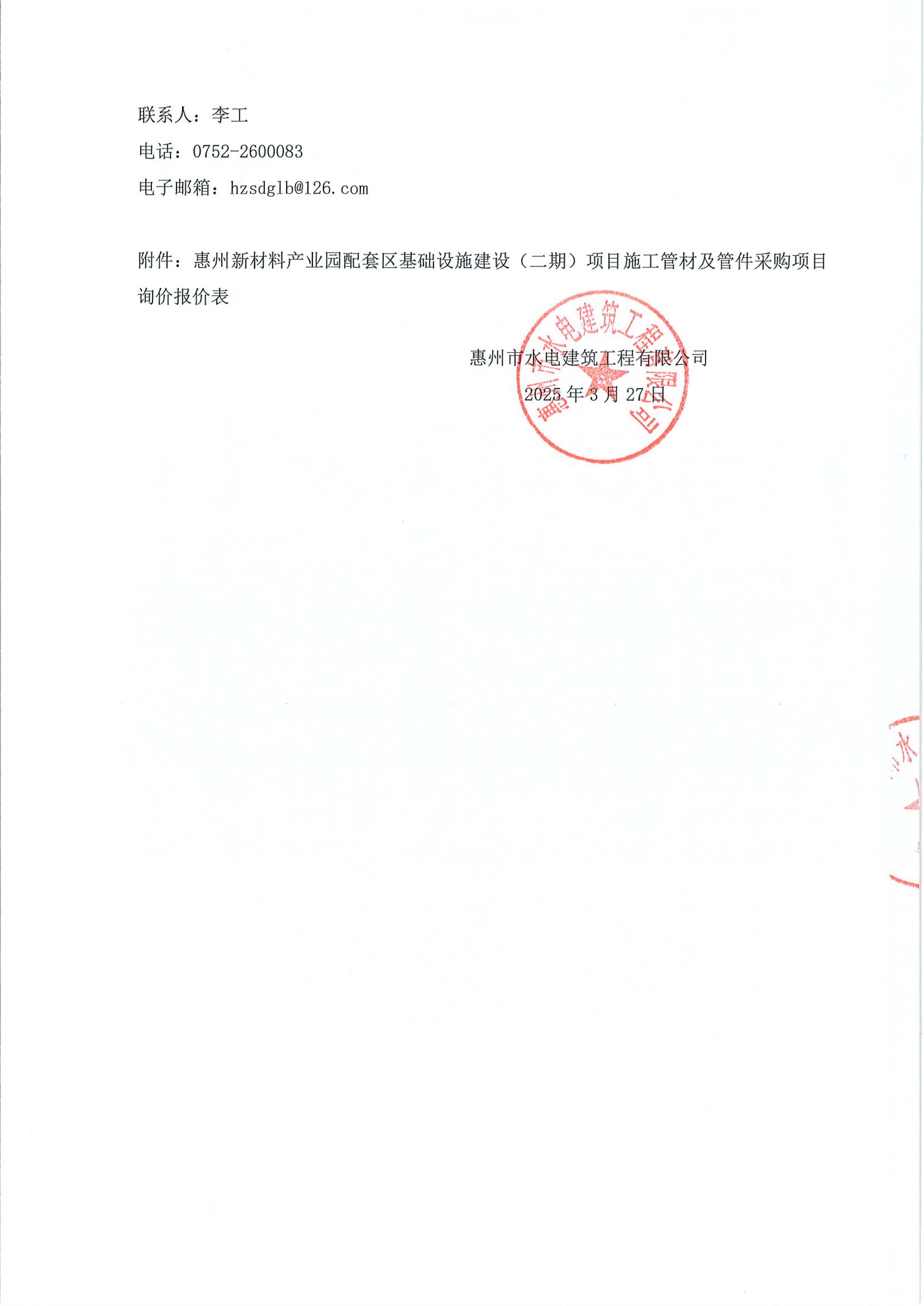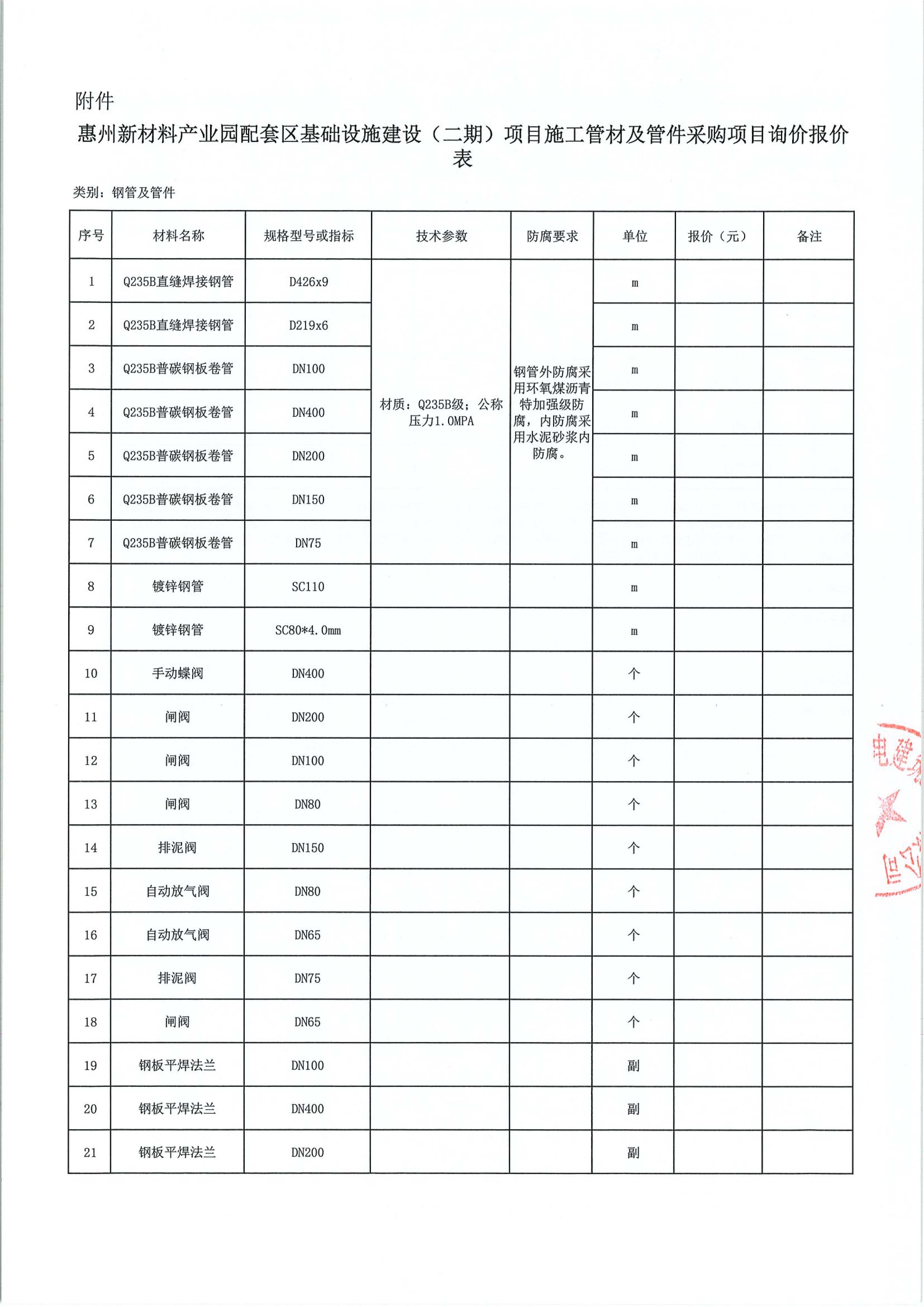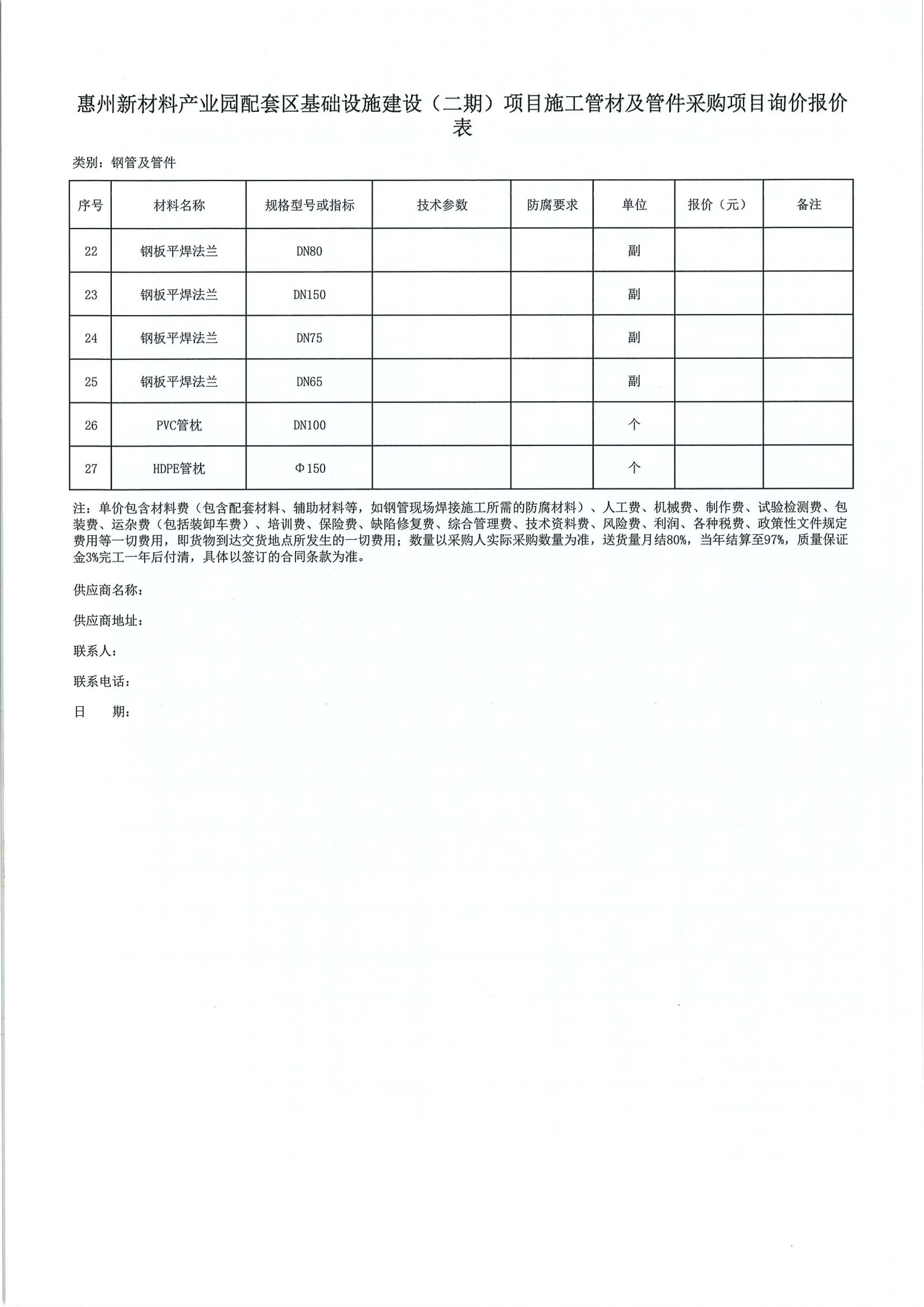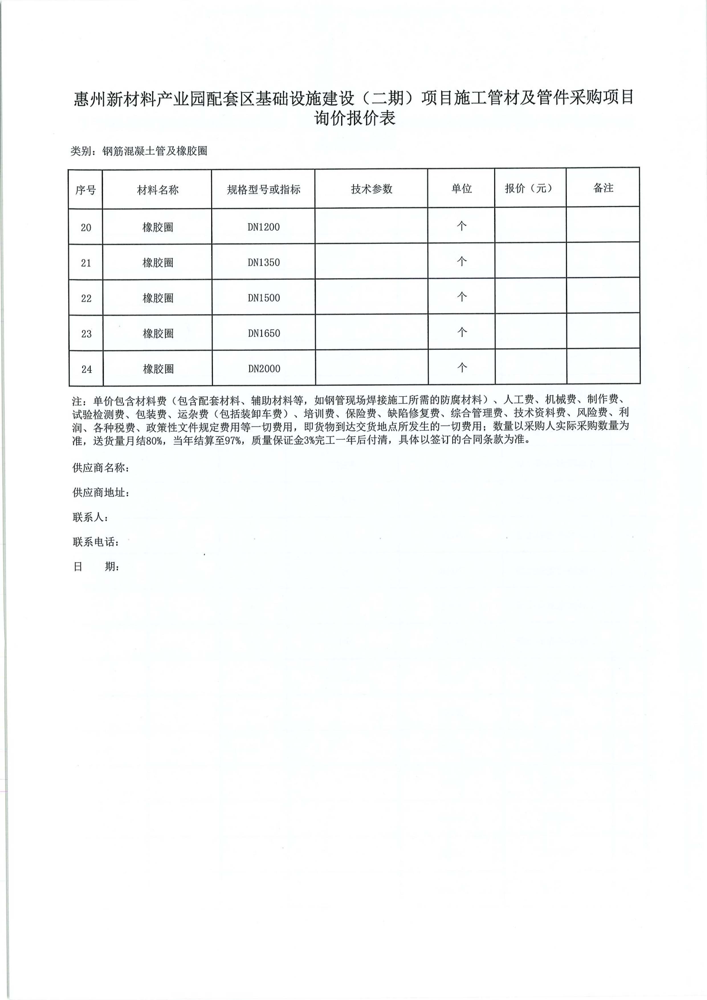 惠州新材料產業園配套區基礎設施建設(二期)項目施工管材及管件采購項目詢價公告附件: