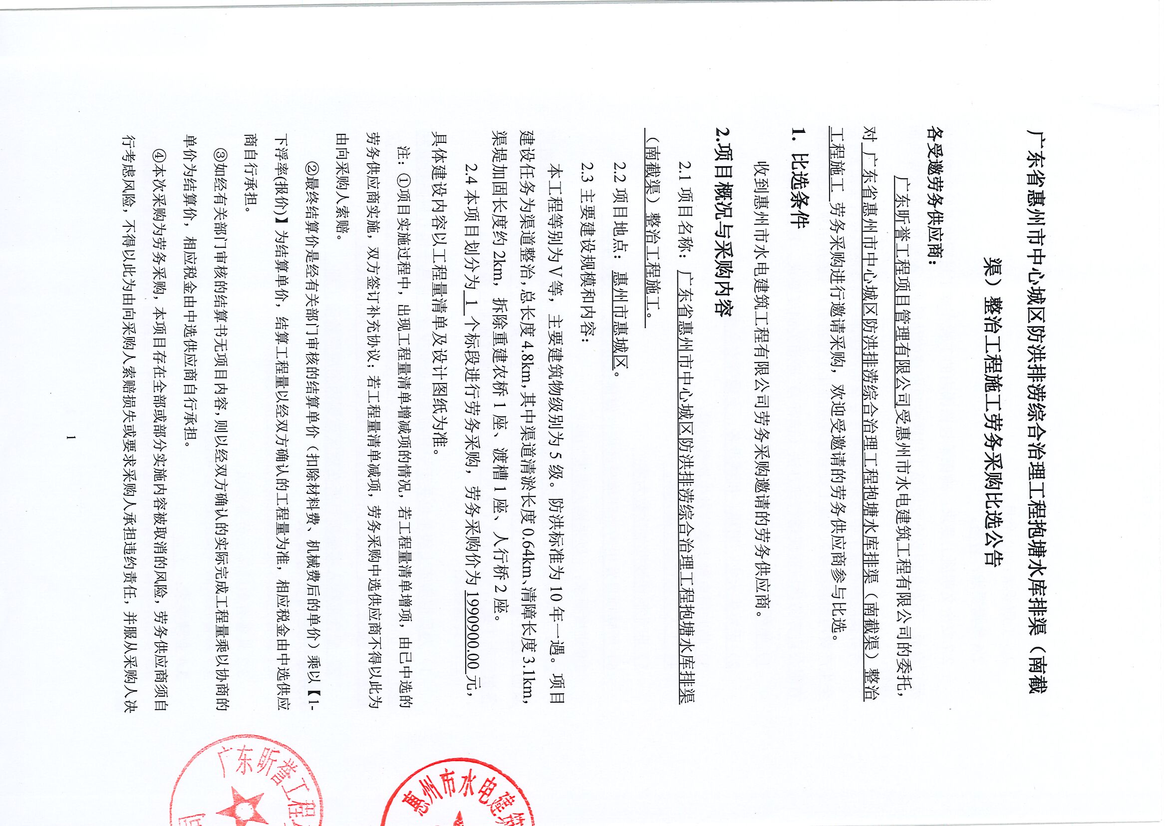 廣東省惠州市中心城區防洪排澇綜合治理工程釣魚公排澇站擴建項目勞務采購比選公告