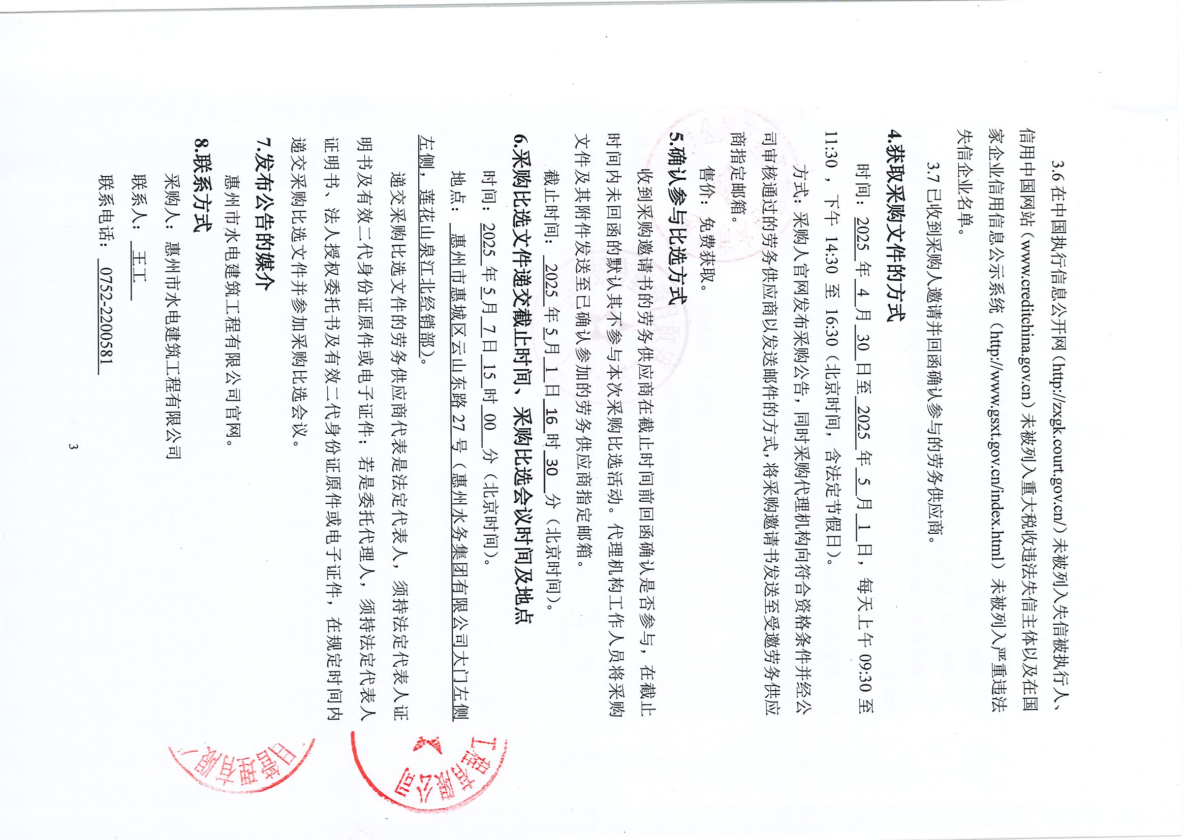 廣東省惠州市中心城區防洪排澇綜合治理工程抱塘水庫排渠(南截渠)整治工程施工勞務采購中選候選人公示