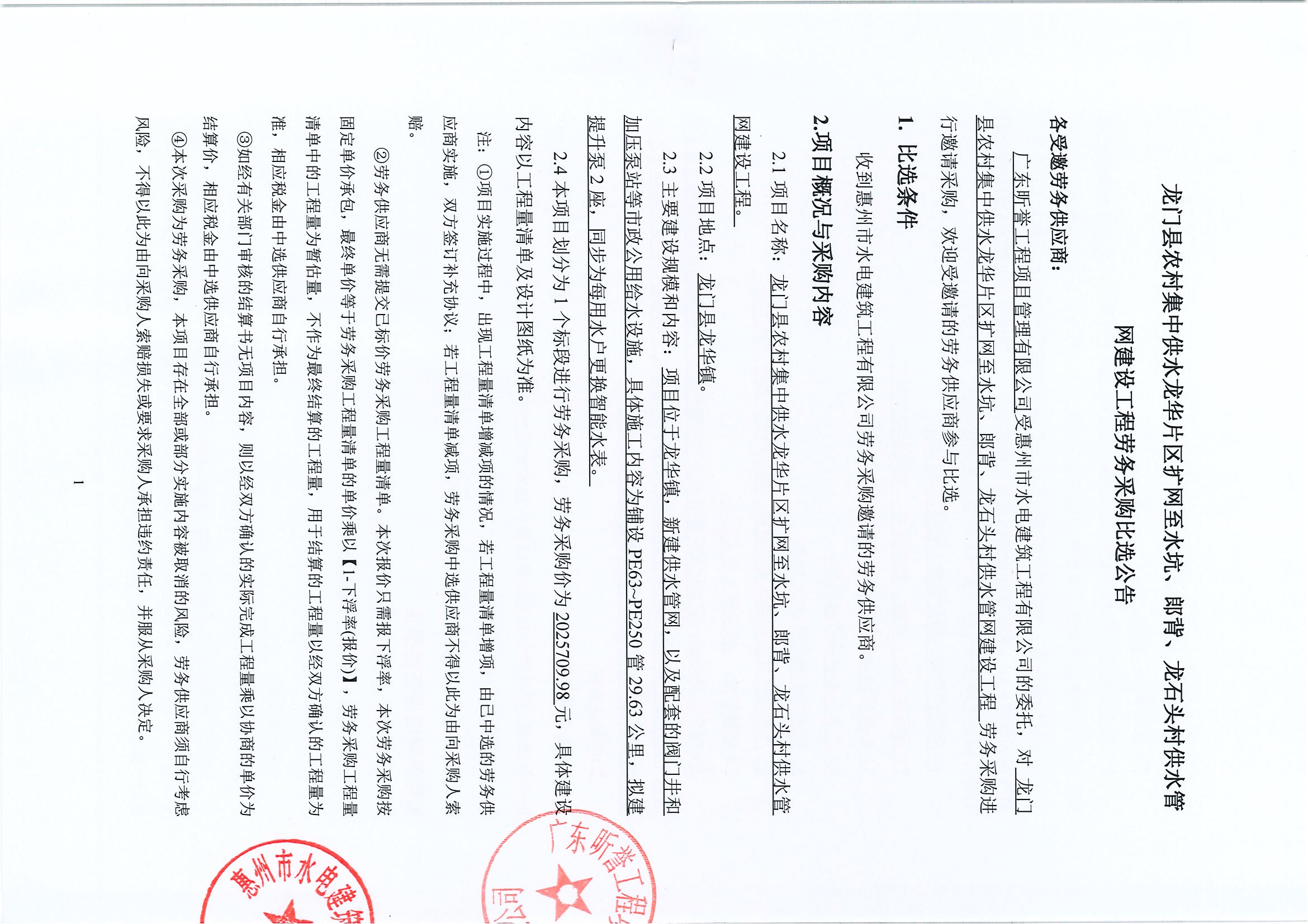 龍門(mén)縣農(nóng)村集中供水龍華片區(qū)擴(kuò)網(wǎng)至水坑、郎背、龍石頭村供水管網(wǎng)建設(shè)工程勞務(wù)采購(gòu)比選公告
