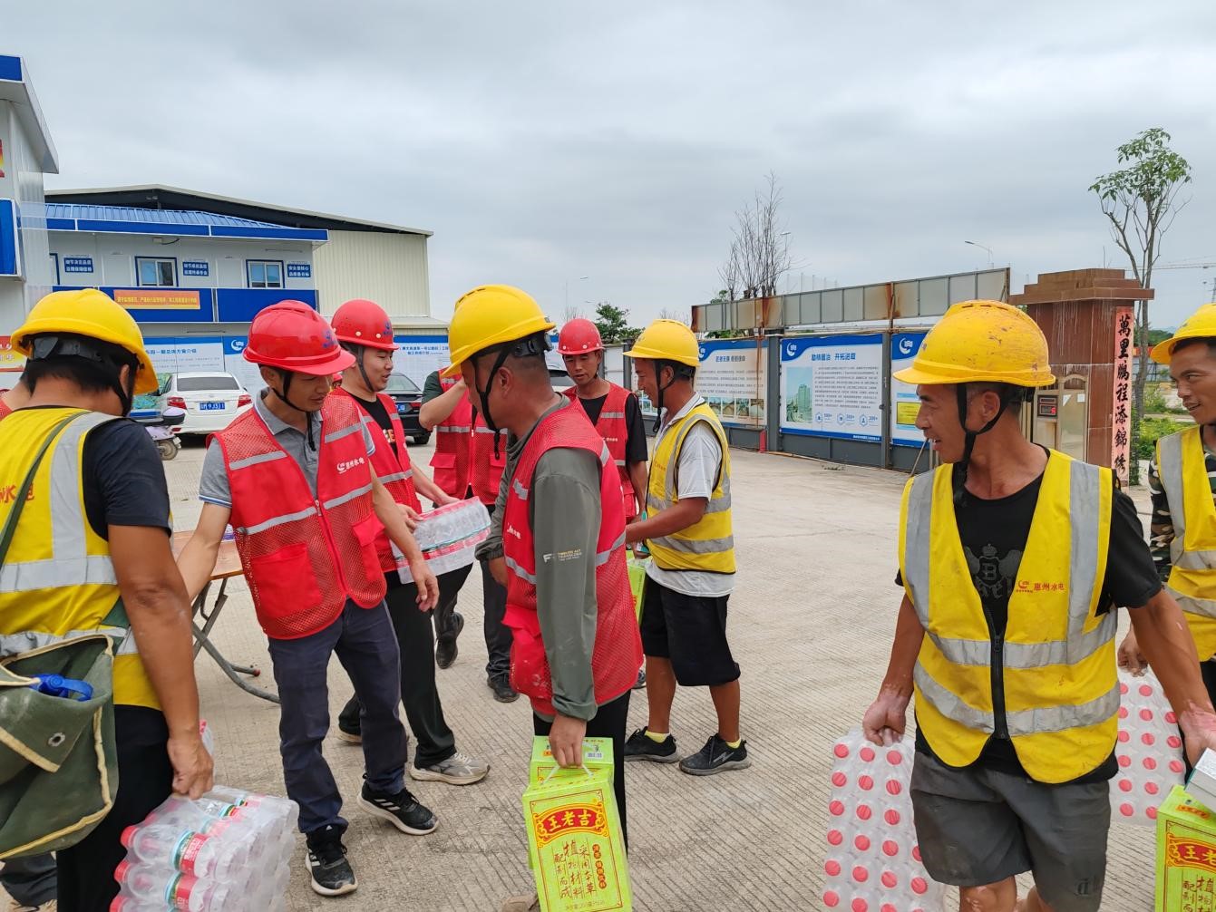 活動現場,臨時黨支部成員與項目部工作人員化身“清涼使者”,將藿香正氣水、王老吉涼茶、礦泉水等防暑降溫物資一一遞到工人手中?!疤鞖庋谉?,一定要注意防暑,合理安排作業時間!”他們一邊發放物資,一邊反復叮囑工人們做好自我防護,科學調整作息,確保安全生產。接過物資的工人們臉上洋溢著笑容,紛紛對這份及時的關懷表示感謝。