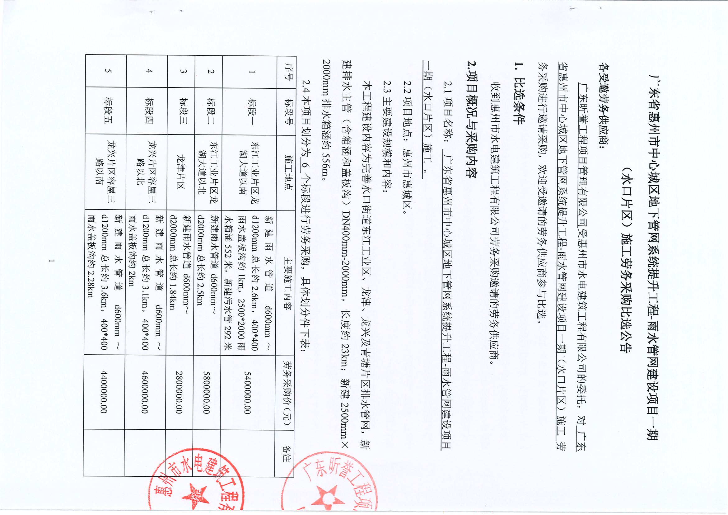 廣東省惠州市中心城區地下管網系統提升工程-雨水管網建設項目一期(水口片區)施工勞務采購比選公告