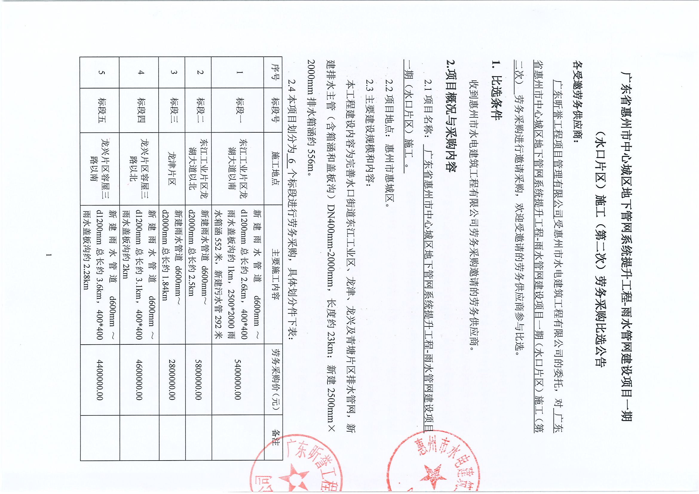 廣東省惠州市中心城區(qū)地下管網(wǎng)系統(tǒng)提升工程-雨水管網(wǎng)建設(shè)項(xiàng)目一期(水口片區(qū))施工(第二次)勞務(wù)采購比選公告