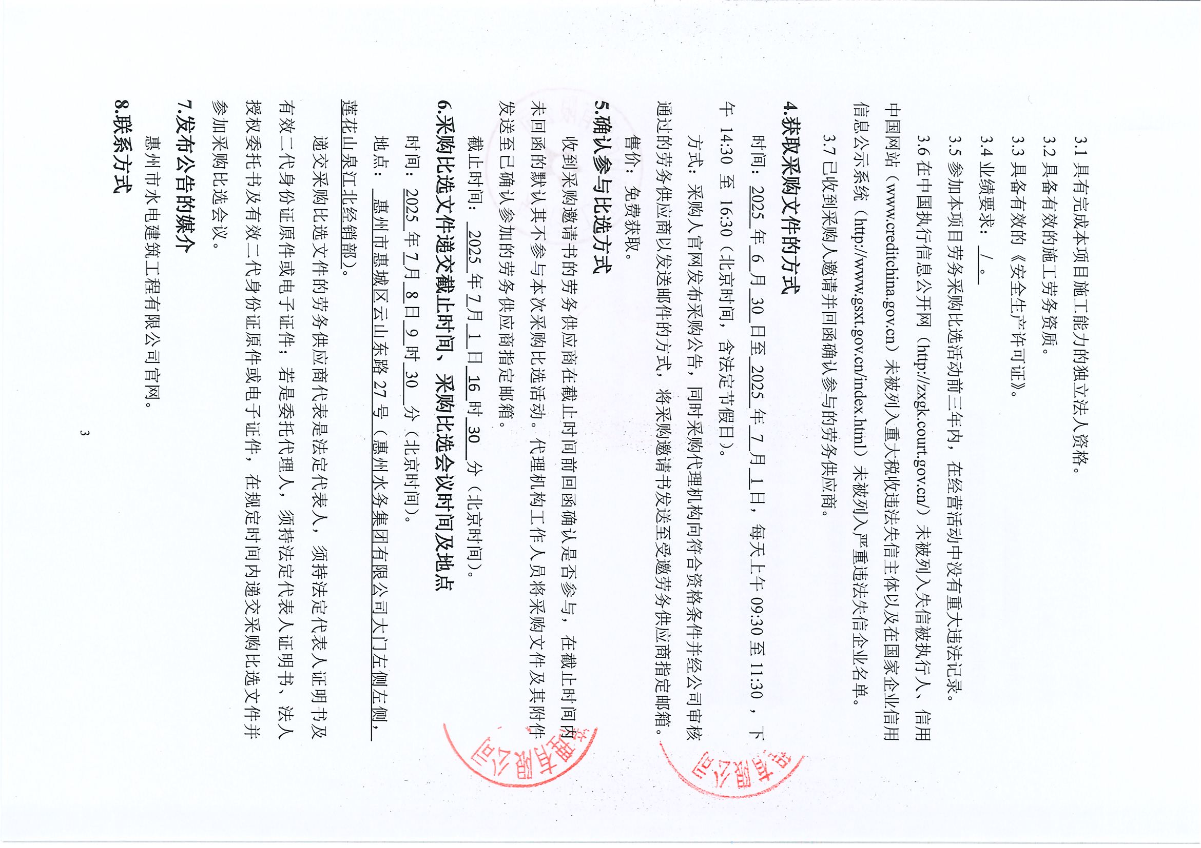 廣東省惠州市中心城區地下管網系統提升工程-木瀝河流域排水管網完善項目施工(第二次)勞務采購比選公告