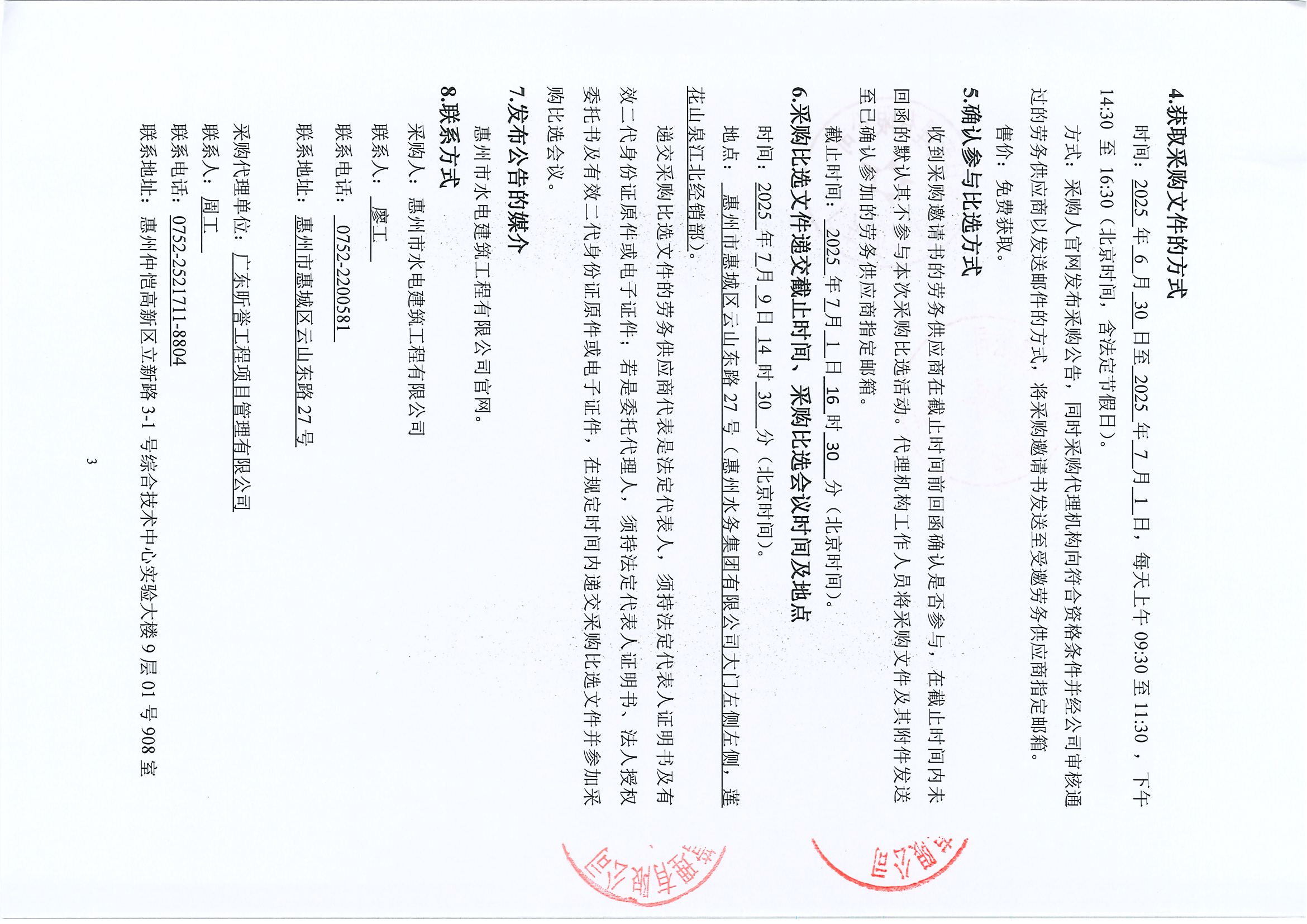廣東省惠州市中心城區(qū)防洪排澇綜合治理工程(青邊瀝治理(一期)工程)施工勞務(wù)采購(gòu)比選公告