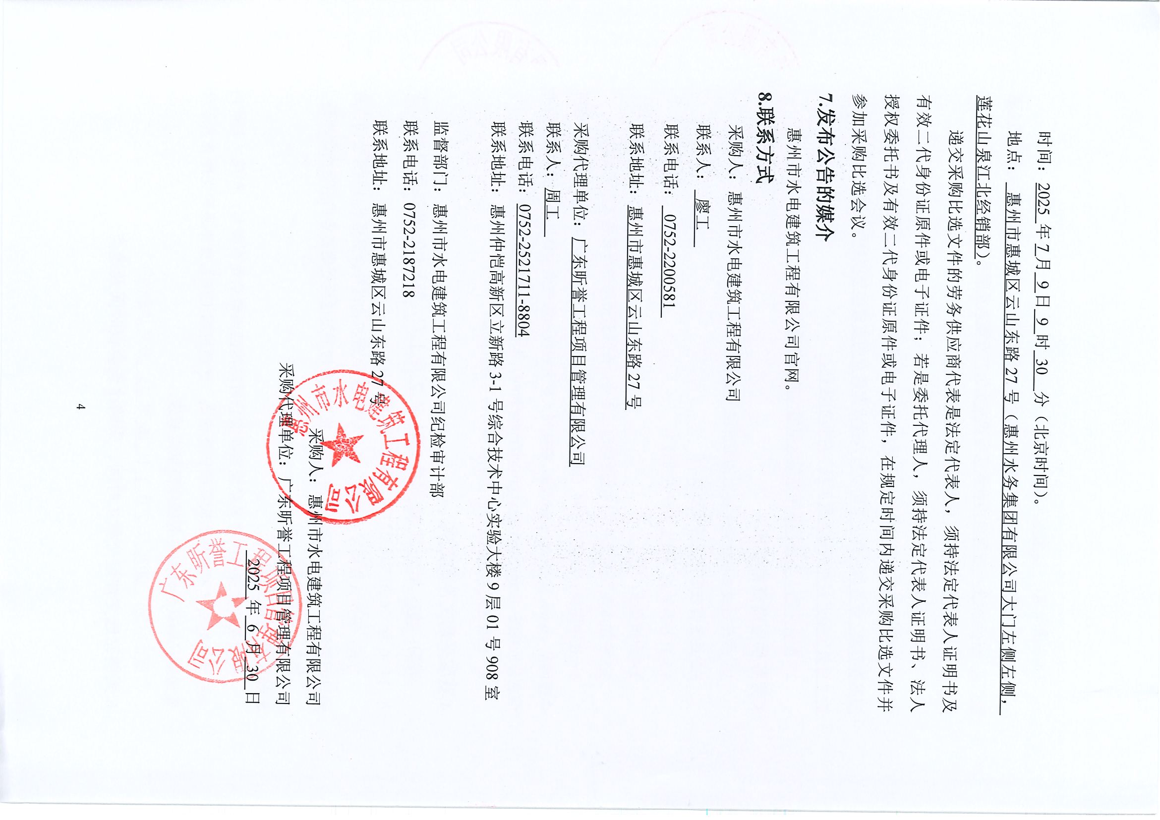 廣東省惠州市中心城區地下管網系統提升工程—新民排渠及洛塘渠流域排水管網完善項目勞務采購比選公告