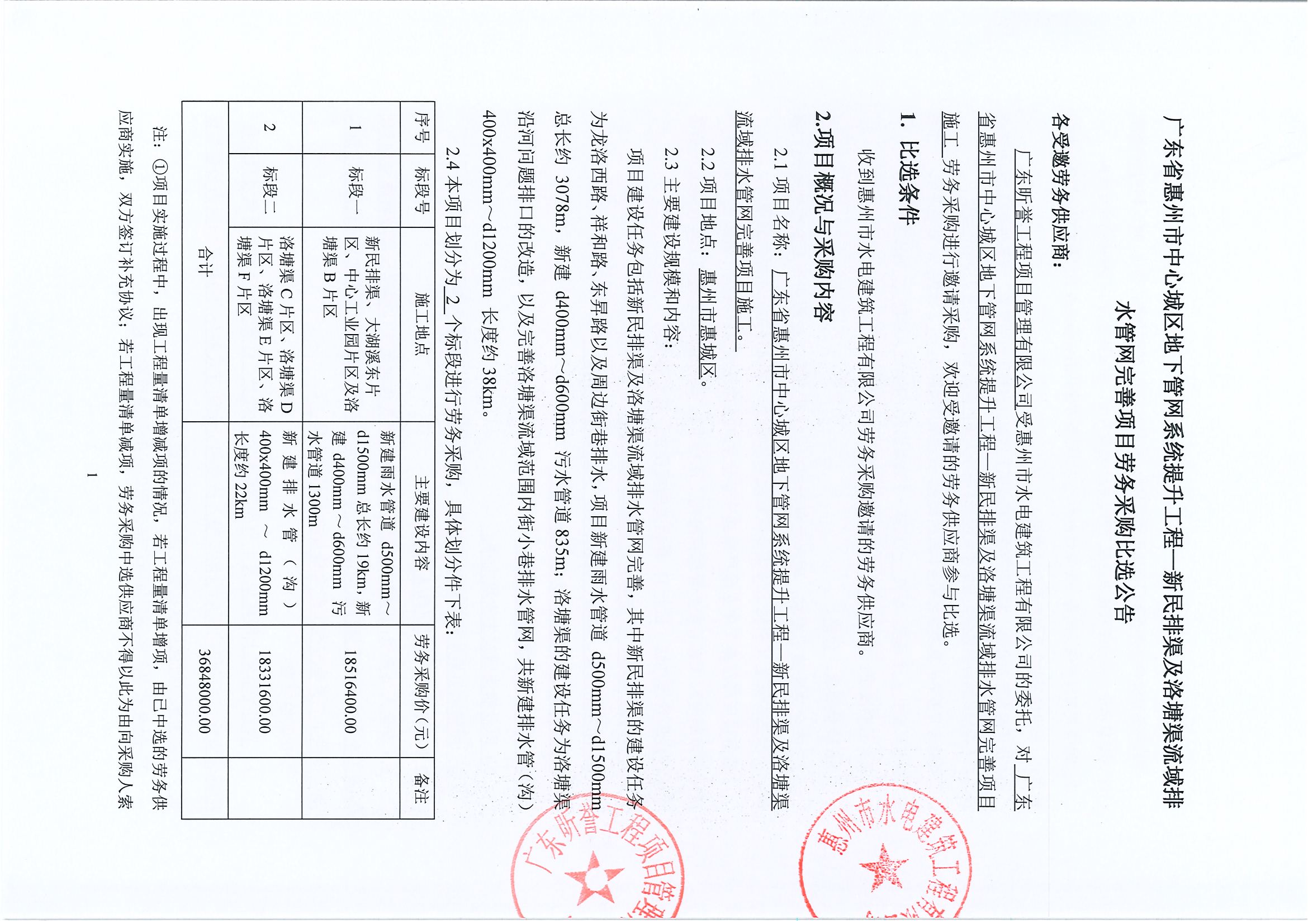 廣東省惠州市中心城區地下管網系統提升工程—新民排渠及洛塘渠流域排水管網完善項目勞務采購比選公告