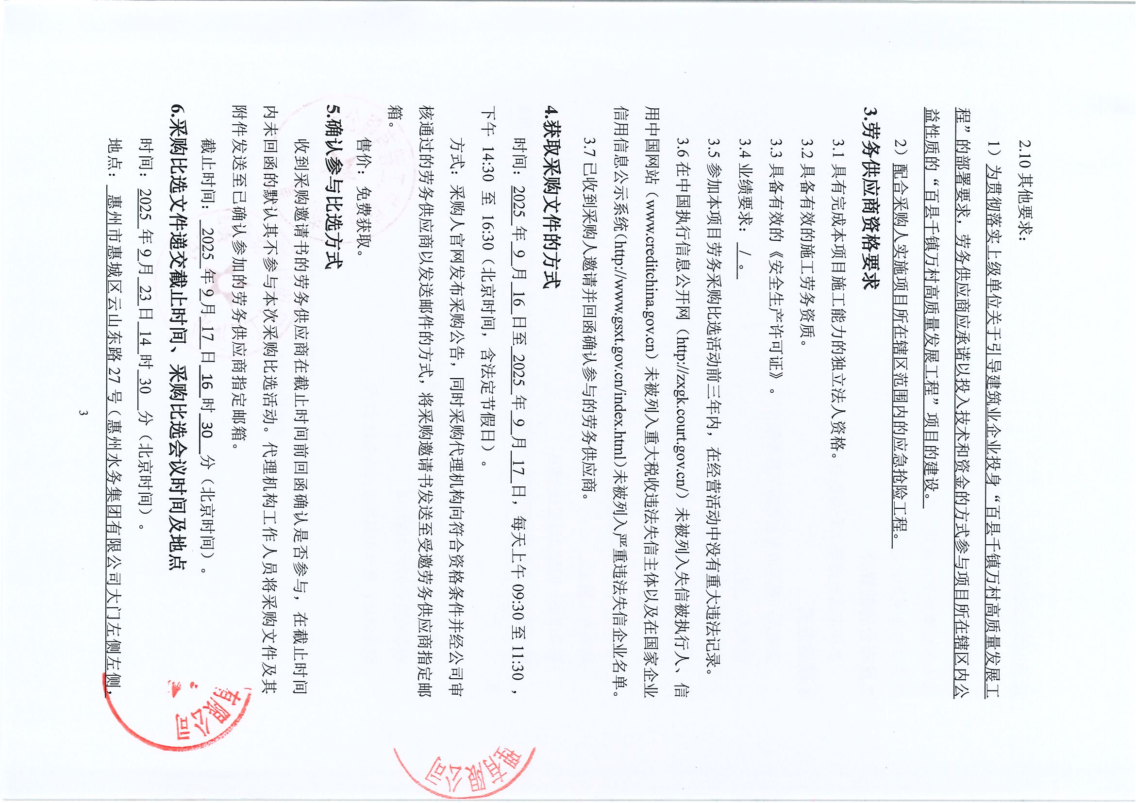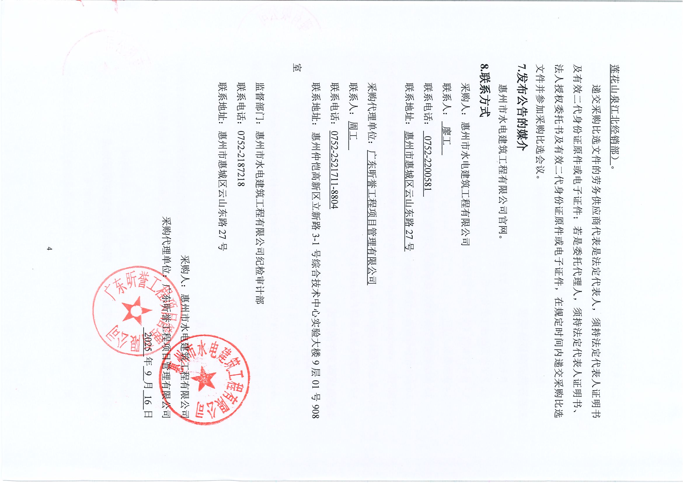 惠州市市政供水管網改造項目(含惠城區、仲愷高新區、惠陽區)施工勞務采購比選公告