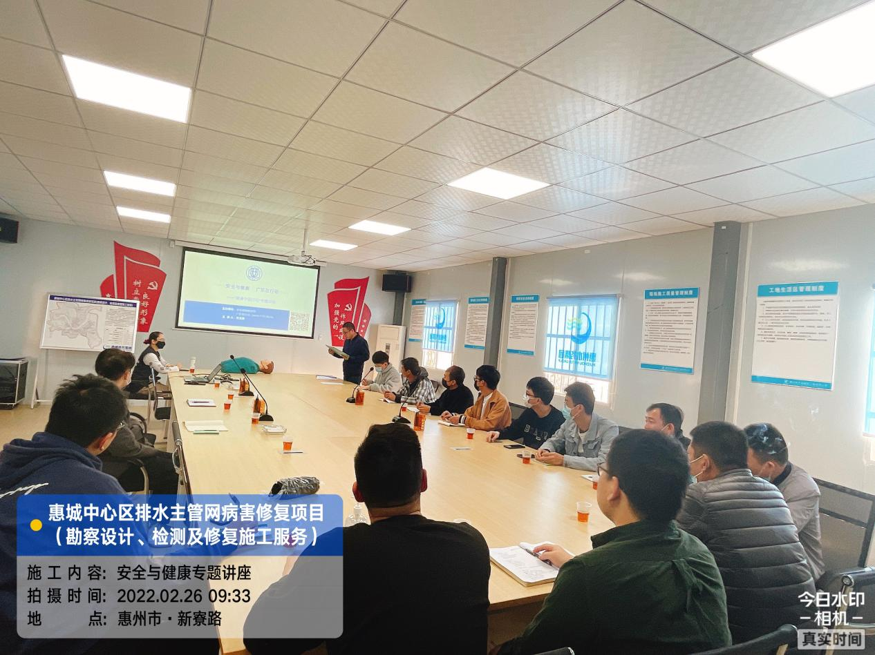 為提高惠城中心區排水主管網病害修復項目部參建人員的安全健康意識,促進身心健康,進一步普及健康知識,2月26日上午,項目部組織開展了安全與健康專題教育講座。