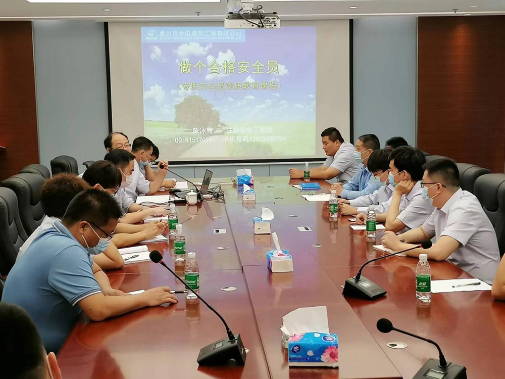 會議結束后,鄭海強董事長開講“安全生產月”第一課《遵守安全生產法,當好第一責任人》,對“安全生產月”活動進行再動員。隨后,安全管理部經理陳泳周為大家講授專職安全員素質教育課程《做個合格安全員》。