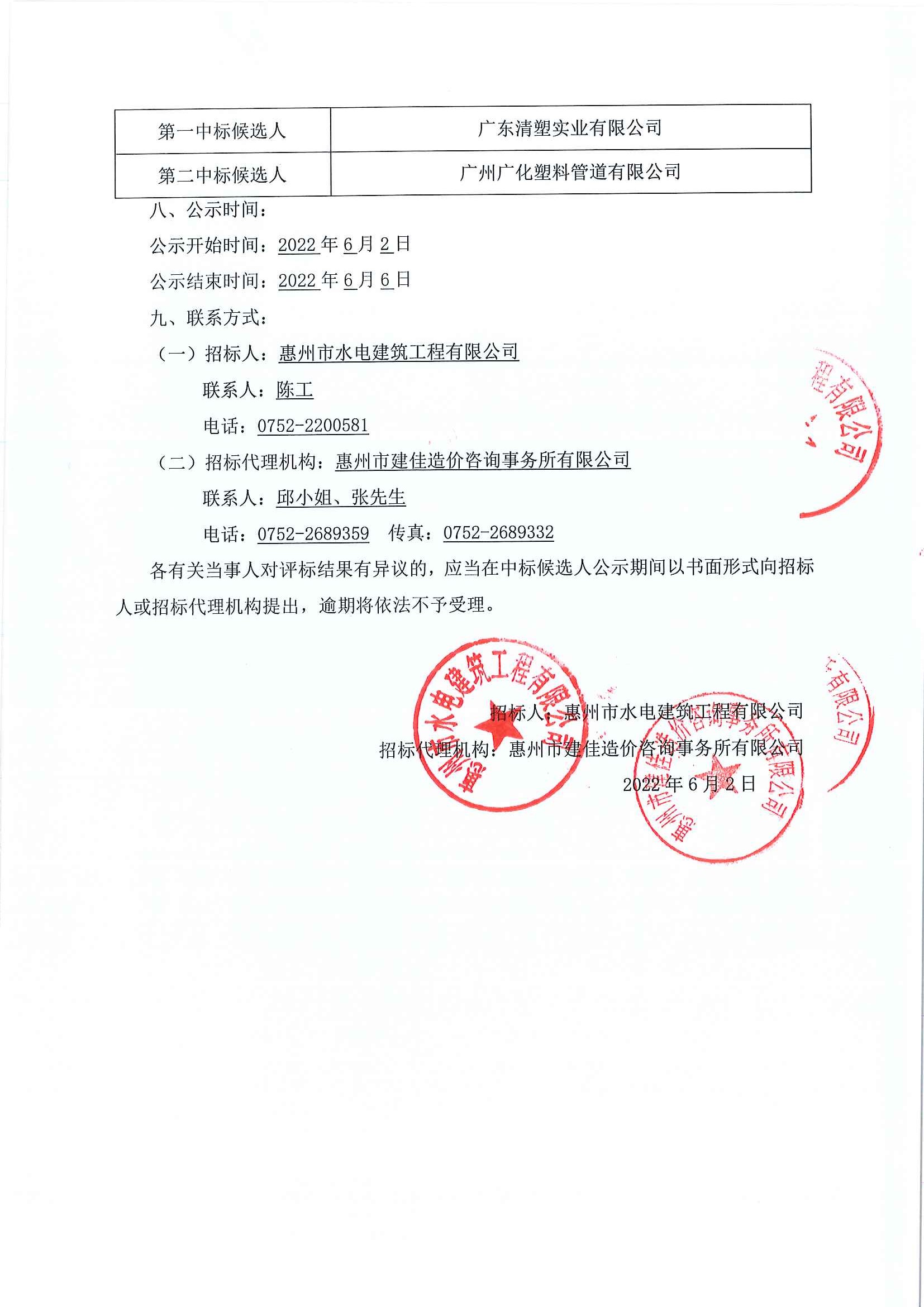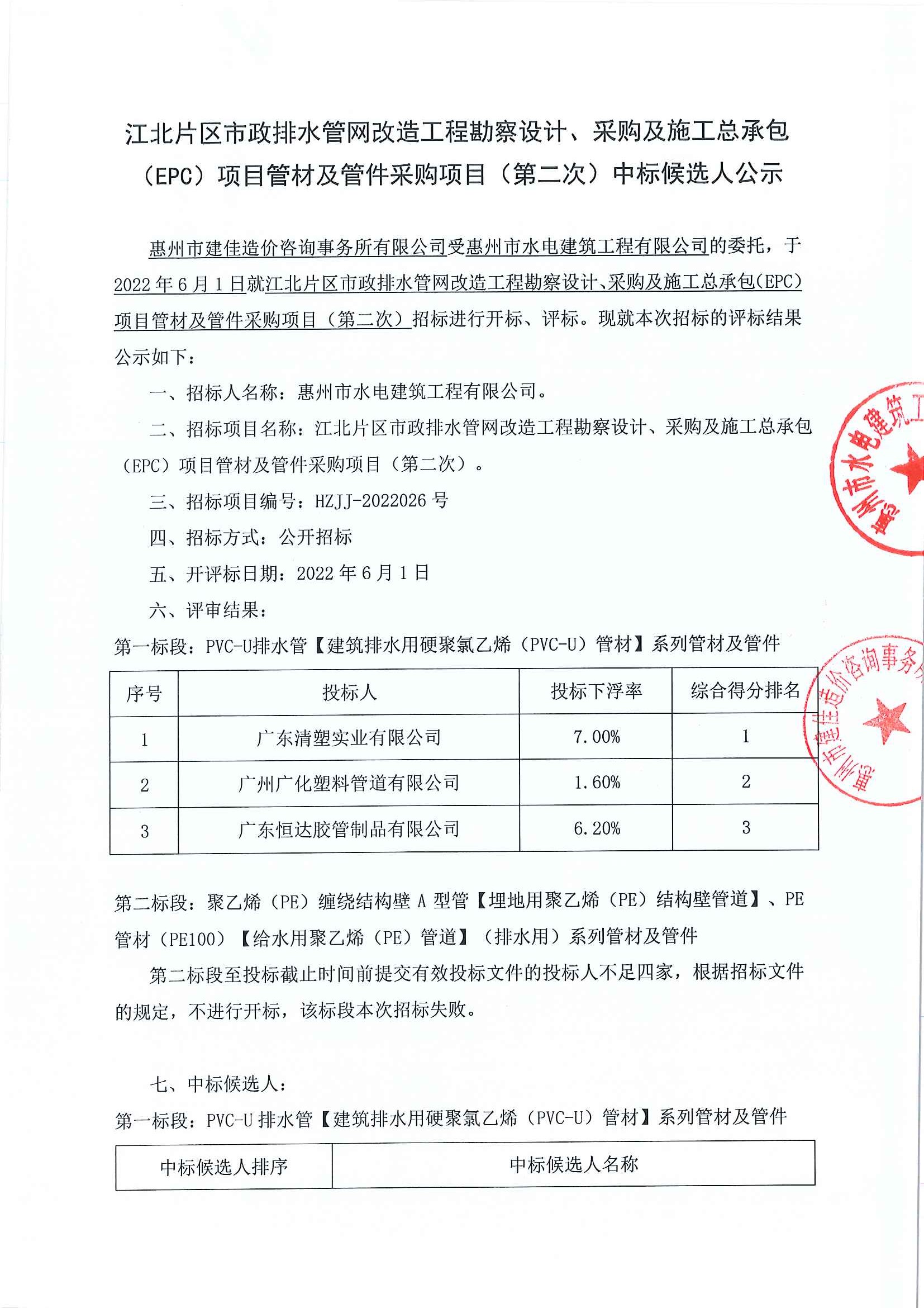 江北片區市政排水管網改造工程勘察設計、采購及施工總承包(EPC)項目管材及管件采購項目(第二次)中標結果公告
