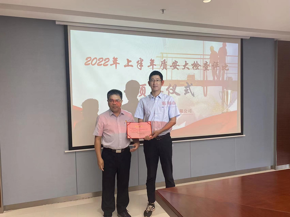 張敏副總經理在會上宣讀了《關于表彰獎勵第四屆“水電安全杯”施工安全知識競賽優勝隊伍的決定》《關于表彰質安工作先進項目部的決定》通知文件。公司安委會主任、董事長鄭海強向獲得 “2022年上半年質安檢查評比獲獎項目頒發榮譽證書。