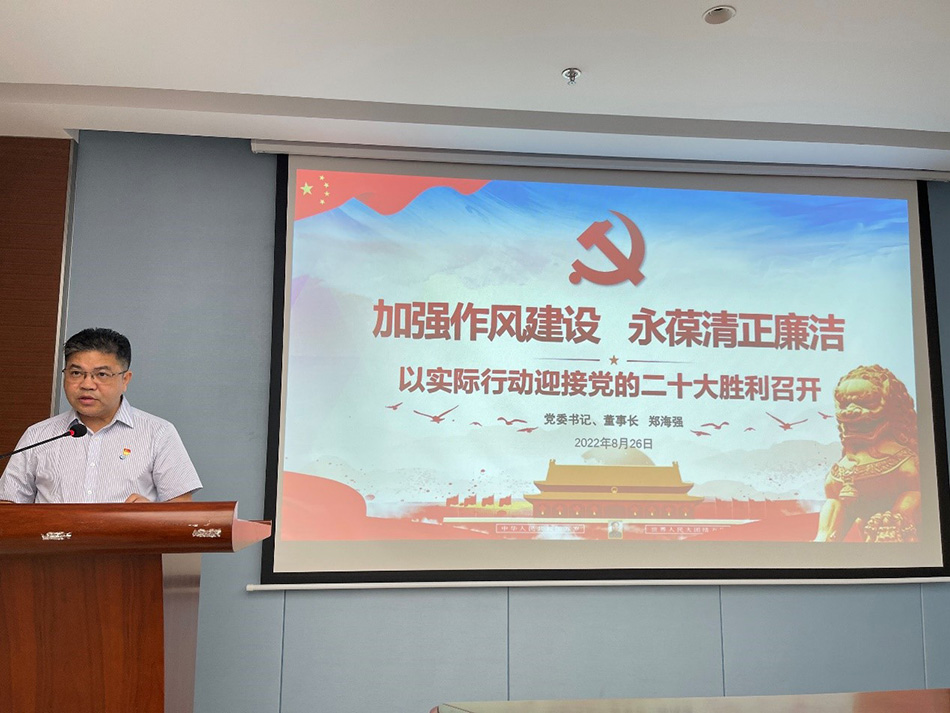 8月26日,公司召開(kāi)黨委理論學(xué)習(xí)中心組(擴(kuò)大)學(xué)習(xí)會(huì)暨紀(jì)律教育月學(xué)習(xí)會(huì)。大會(huì)由黨委書(shū)記、董事長(zhǎng)鄭海強(qiáng)主持,黨委中心組成員、分(子)公司負(fù)責(zé)人以及機(jī)關(guān)支部全體黨員參加會(huì)議。