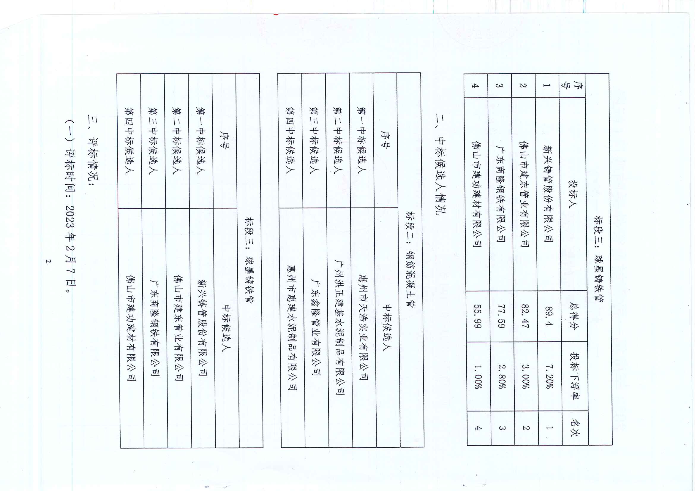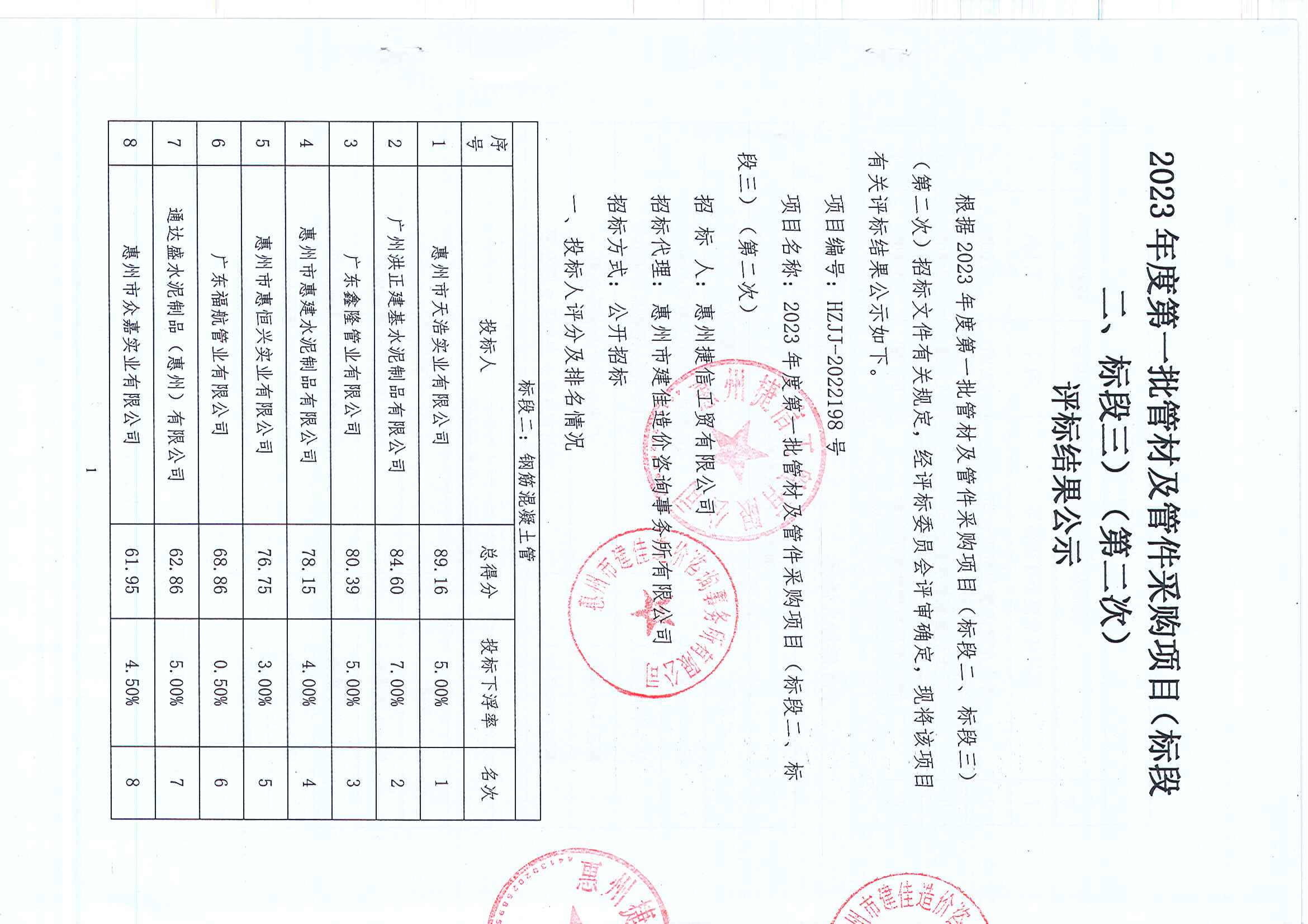 捷信工貿公司2023年度第一批管材及管件采購項目(標段二、標段三)(第二次)評標結果公示