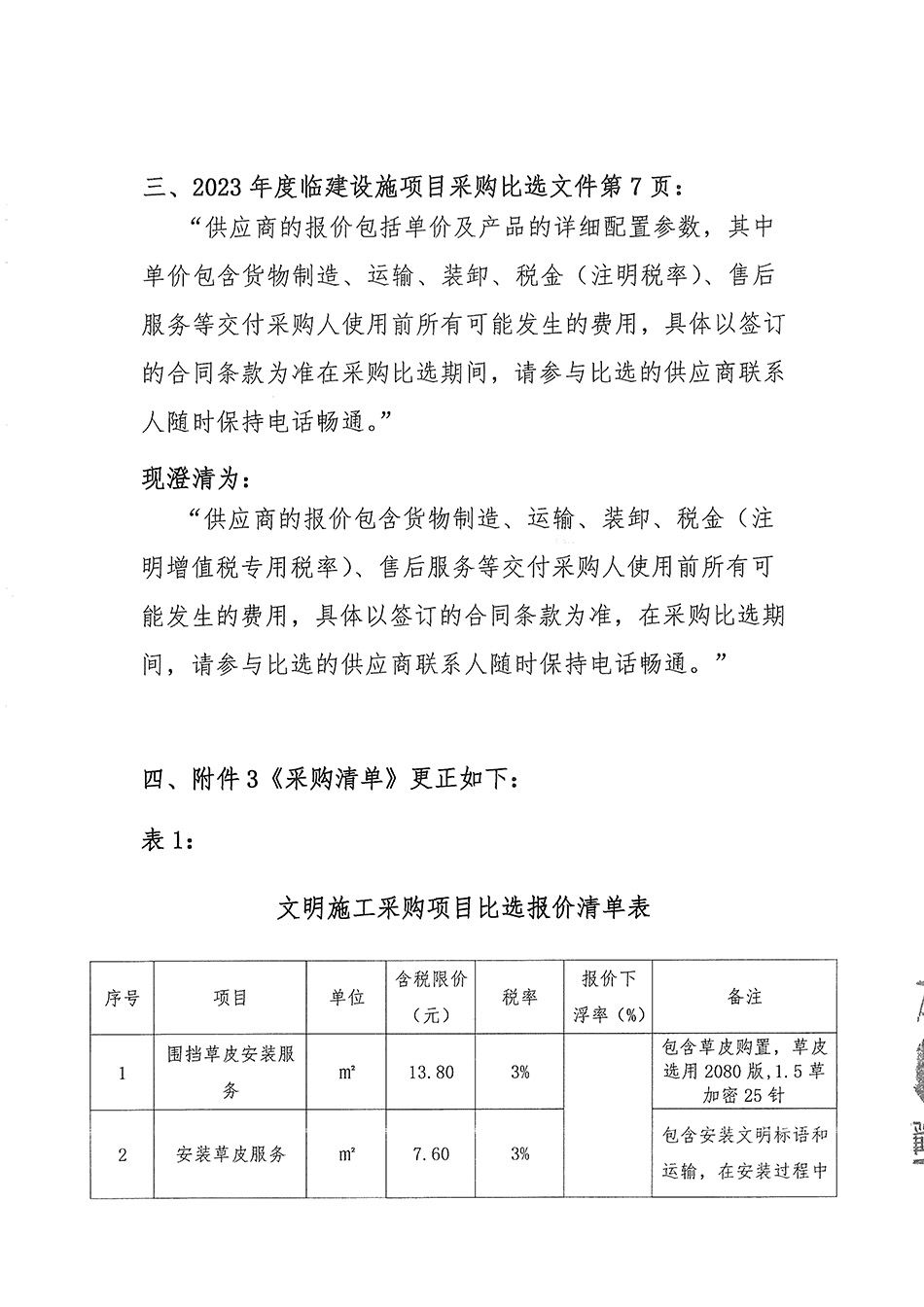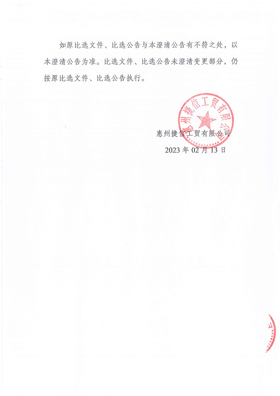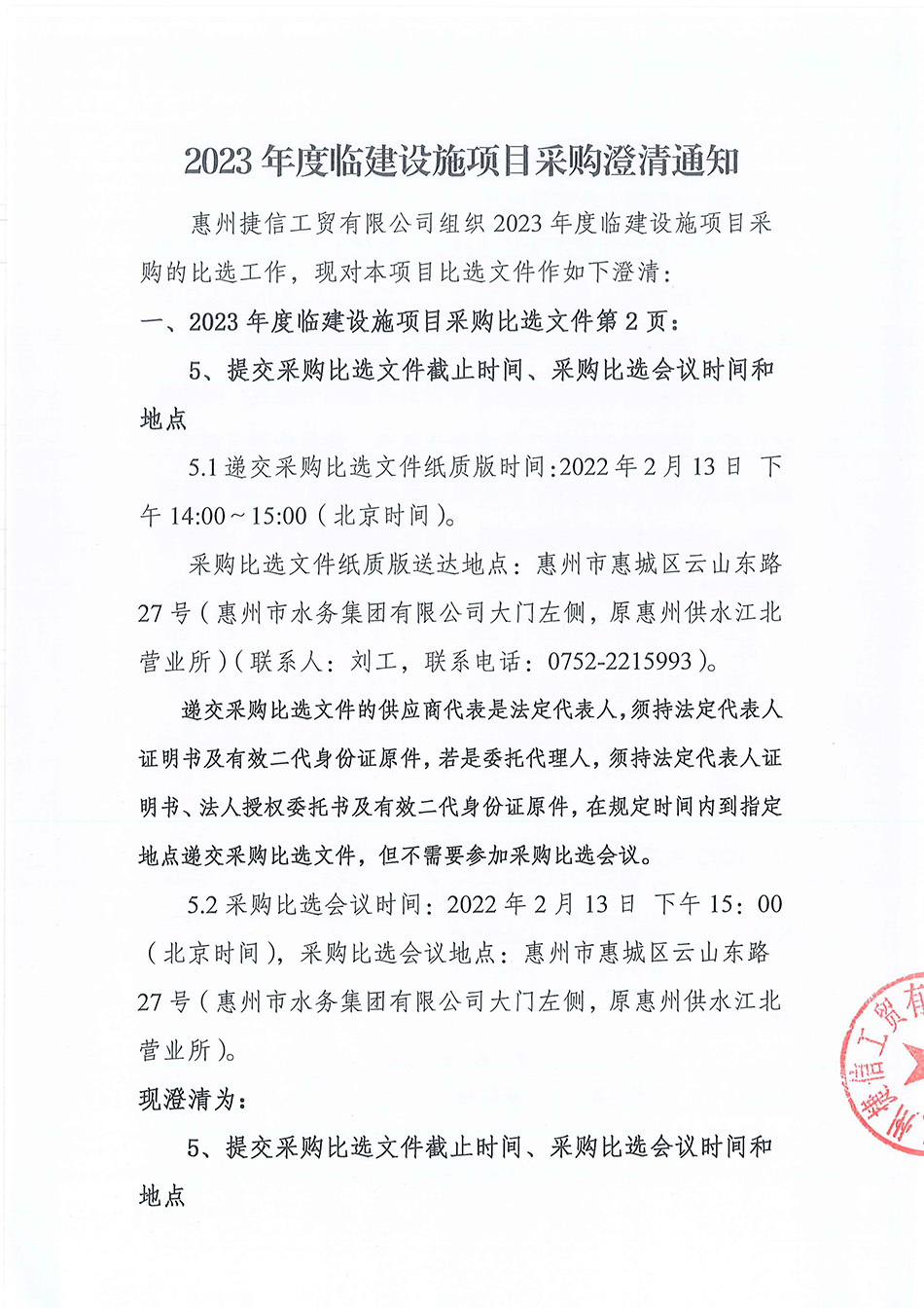捷信工貿(mào)公司2023年度臨建設(shè)施項(xiàng)目采購(gòu)澄清通知