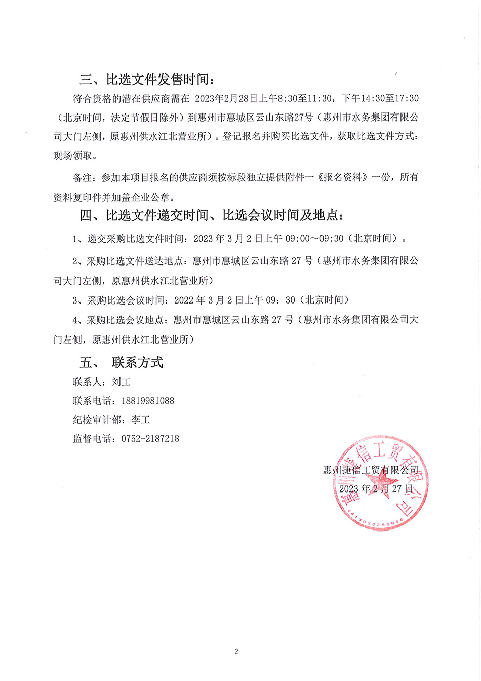 捷信工貿公司2023年度臨建設施采購項目(第二次)采購公告