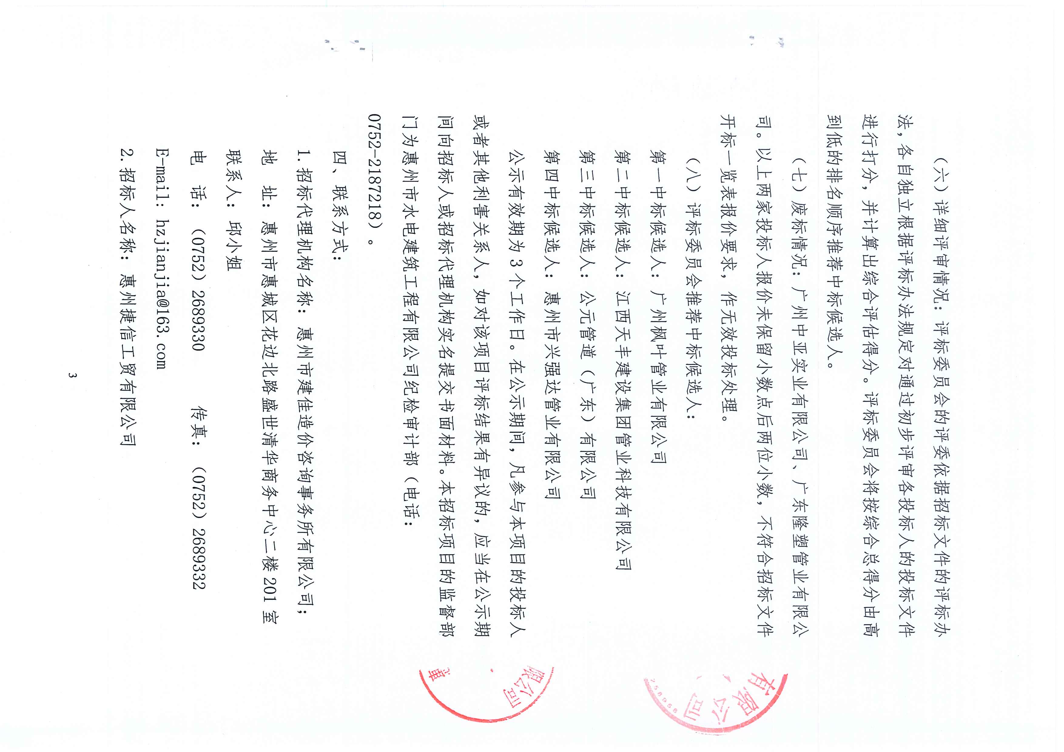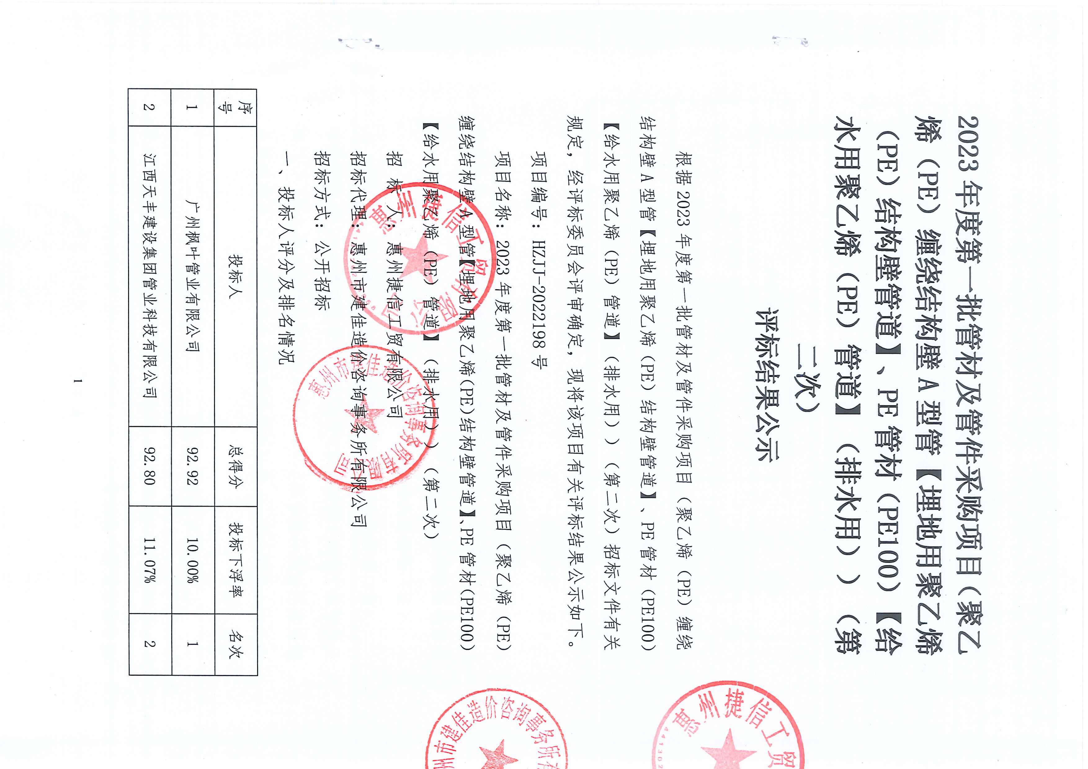 捷信工貿公司2023年度第一批管材及管件采購項目(標段一)(第二次)評標結果公示