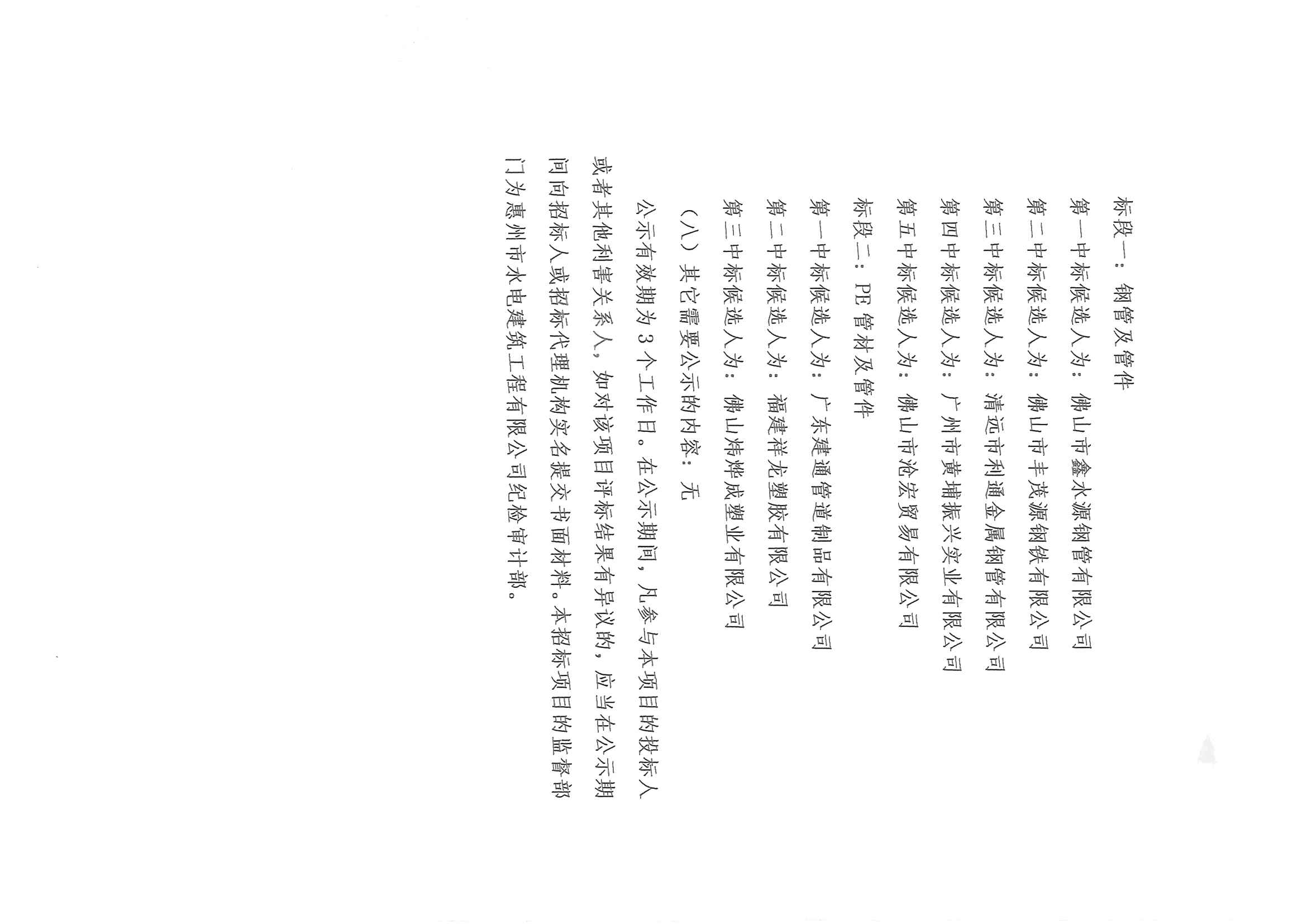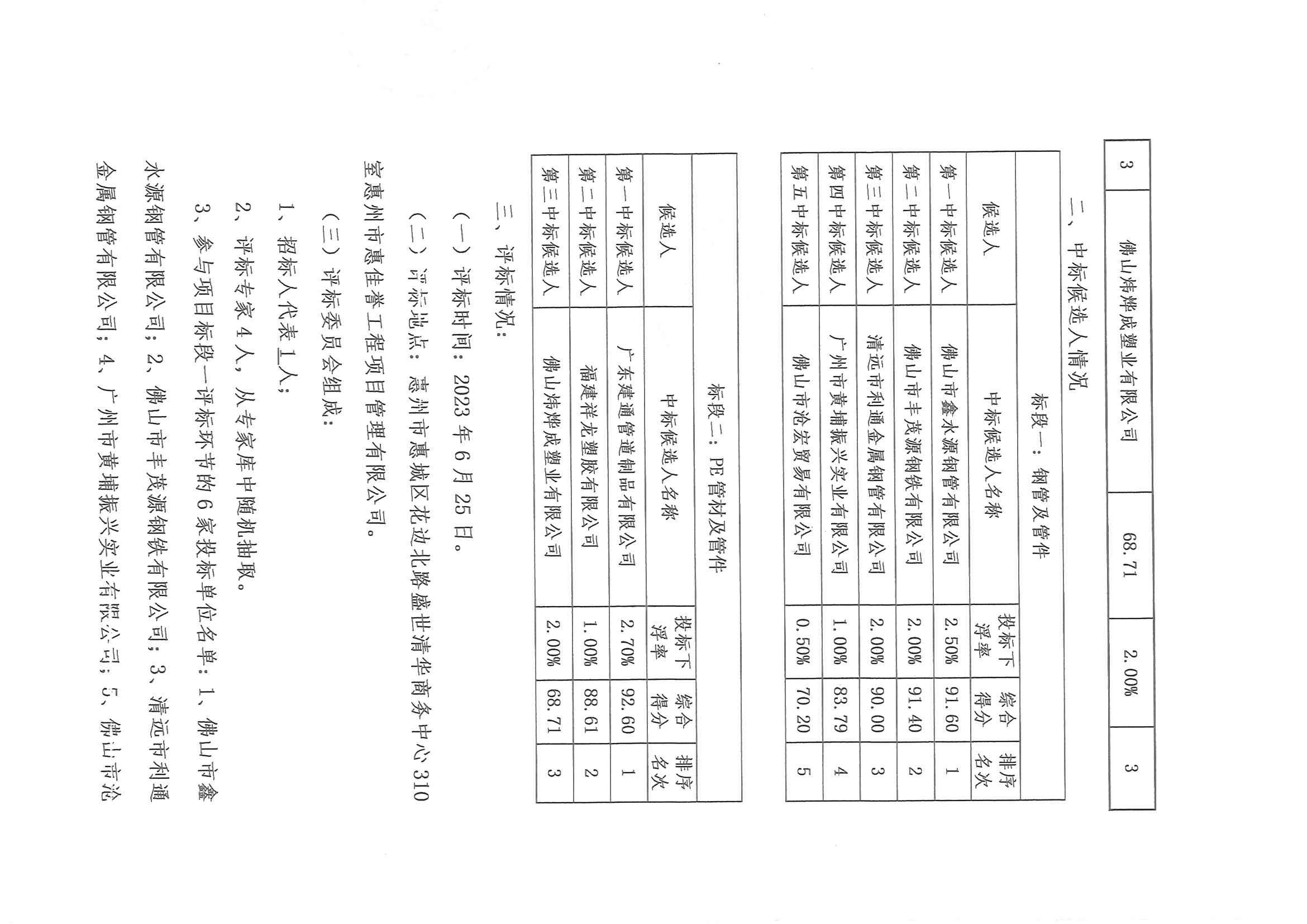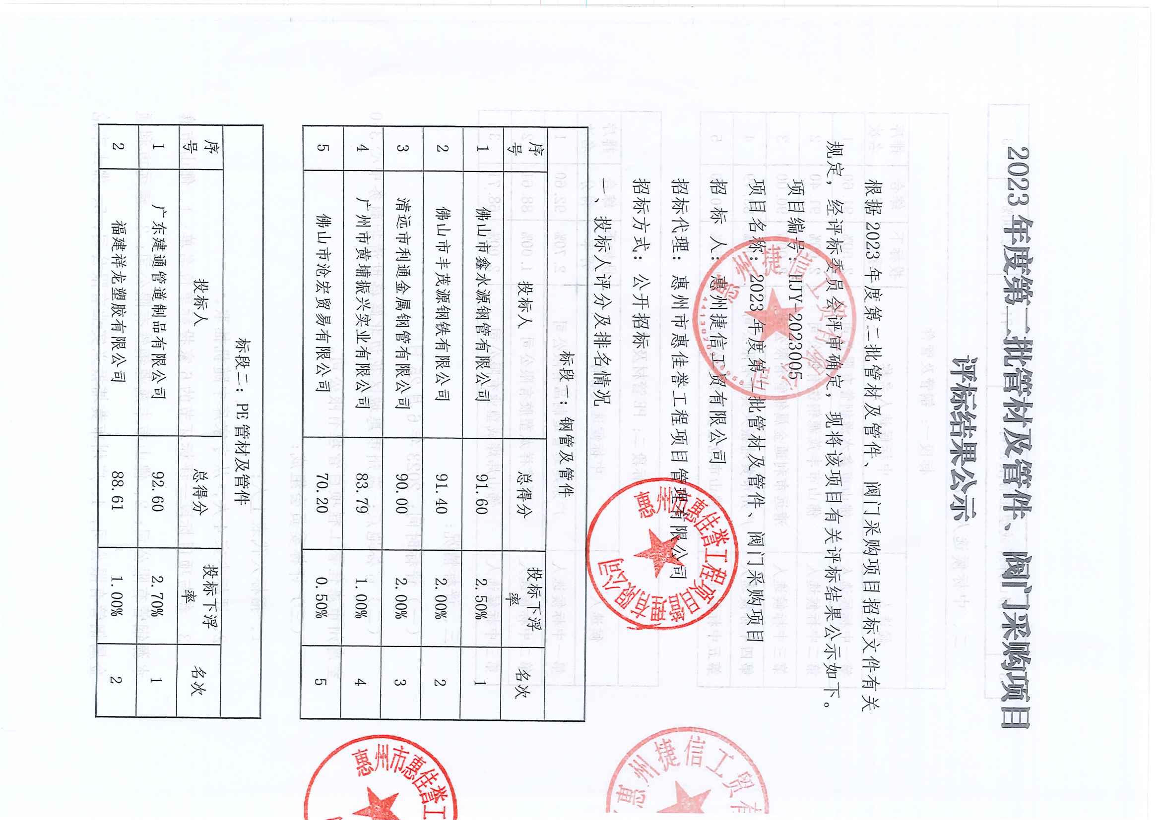 捷信工貿公司2023年度第二批管材及管件、閥門采購項目評標結果公示