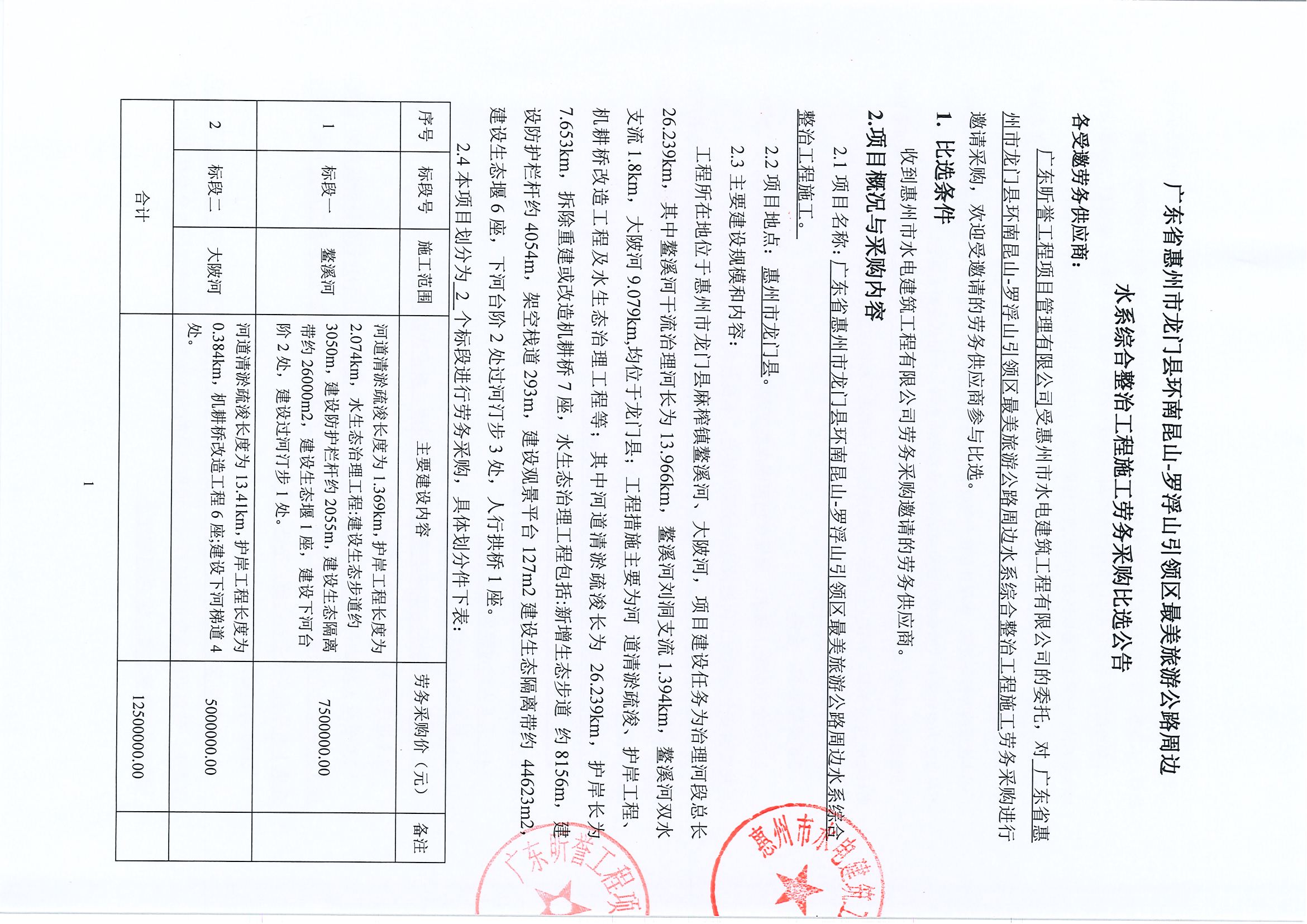 廣東省惠州市龍門縣環南昆山-羅浮山引領區最美旅游公路周邊水系綜合整治工程施工勞務采購比選公告