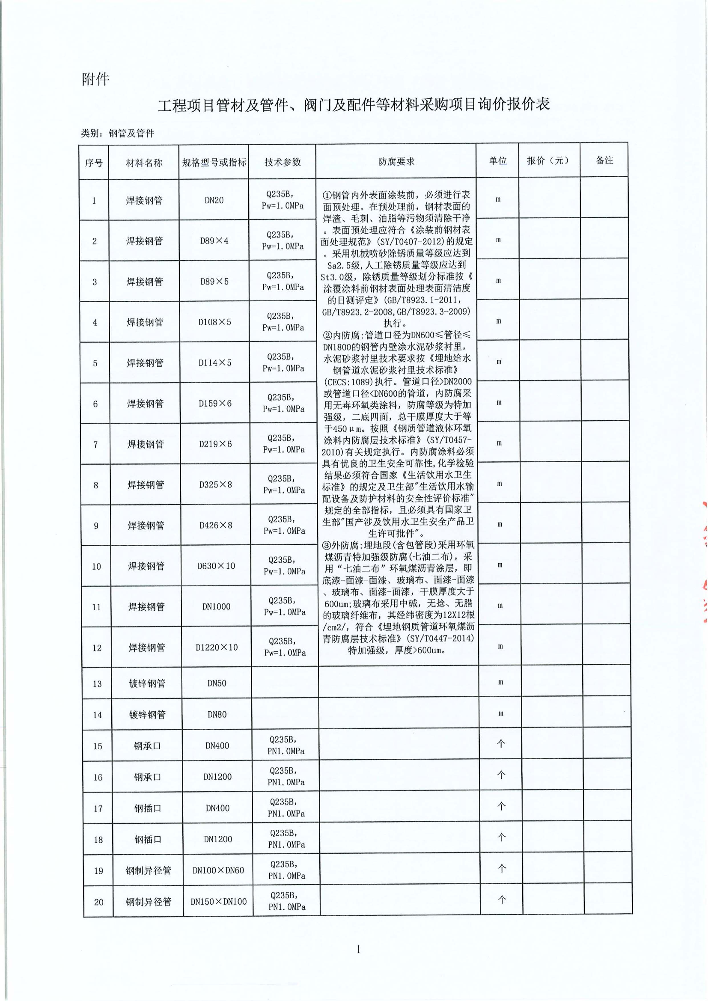 附件:工程項目管材及管件、閥門及配件等材料采購項目詢價報價表