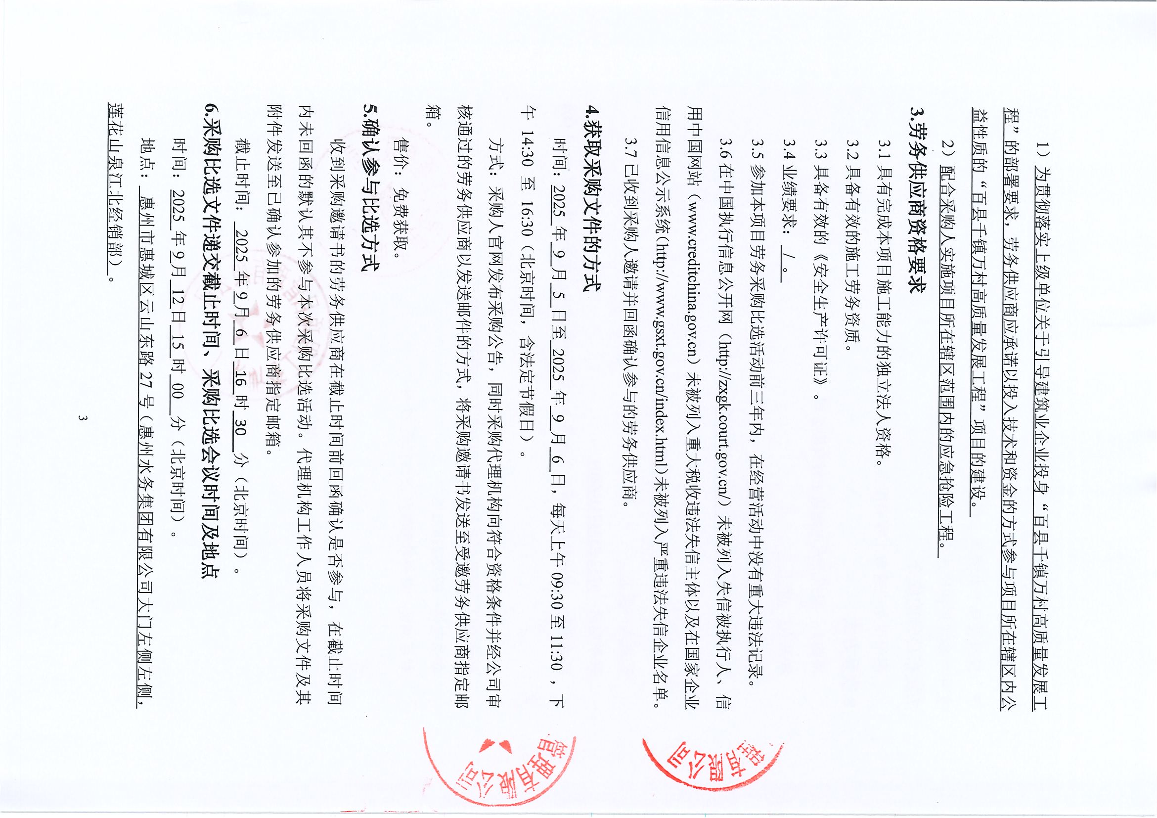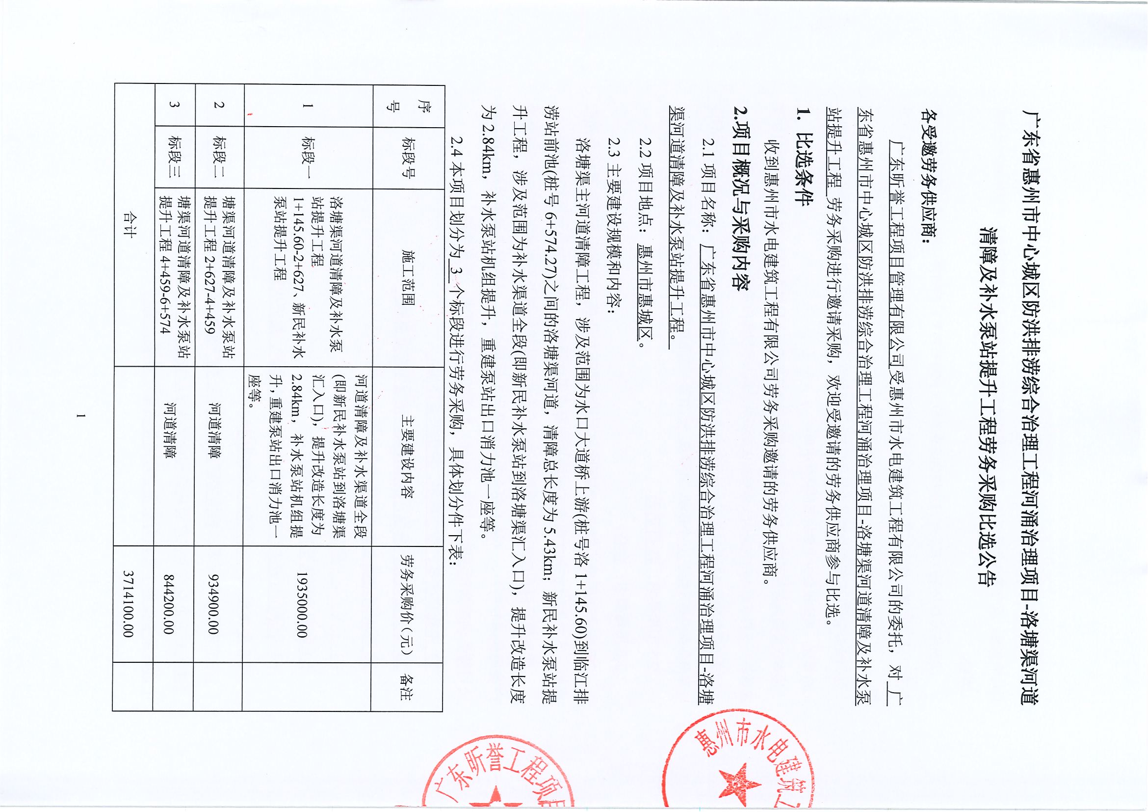 廣東省惠州市中心城區防洪排澇綜合治理工程河涌治理項目-洛塘渠河道清障及補水泵站提升工程勞務采購比選公告