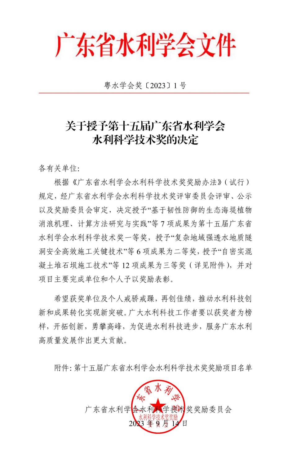9月14日,廣東省水利學(xué)會(huì)水利科學(xué)技術(shù)獎(jiǎng)勵(lì)委員會(huì)公布了《關(guān)于授予第十五屆廣東省水利學(xué)會(huì)水利科學(xué)技術(shù)獎(jiǎng)的決定》,由市水電公司獨(dú)立完成的《長(zhǎng)距離全斷面巖石頂管施工關(guān)鍵技術(shù)研究》獲得三等獎(jiǎng)。