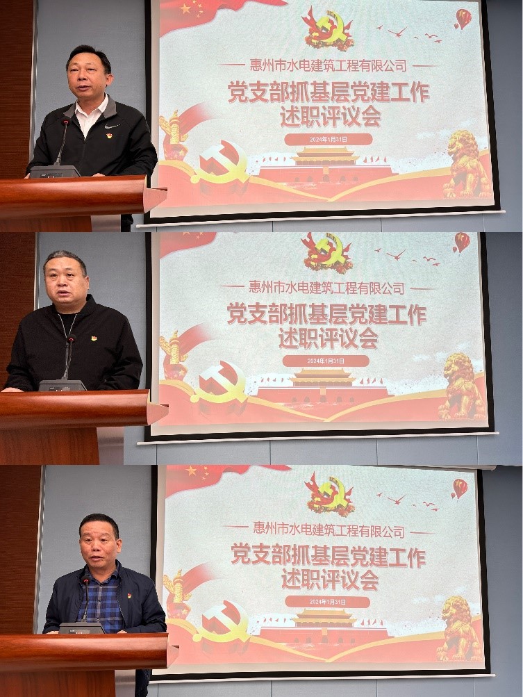 會上,二分公司黨支部、三分公司黨支部、房建分公司黨支部等基層黨組織書記依次進行現場述職,客觀總結過去一年黨建工作的經驗和成效,對工作中存在的問題進行查擺,并明確了2024年的工作思路和工作目標。全體參會人員根據述職情況和日常工作表現,對各黨支部書記進行了評議打分。